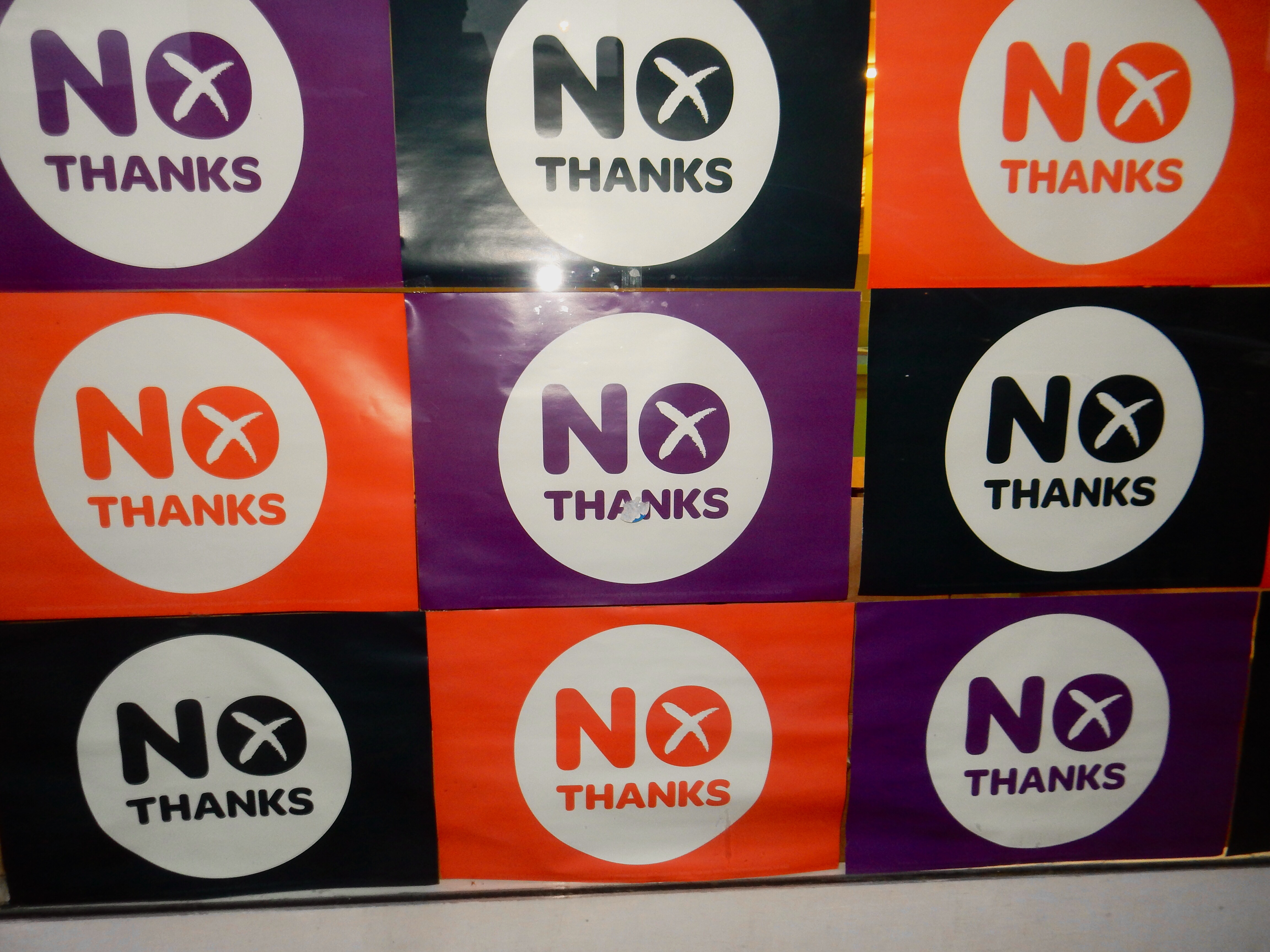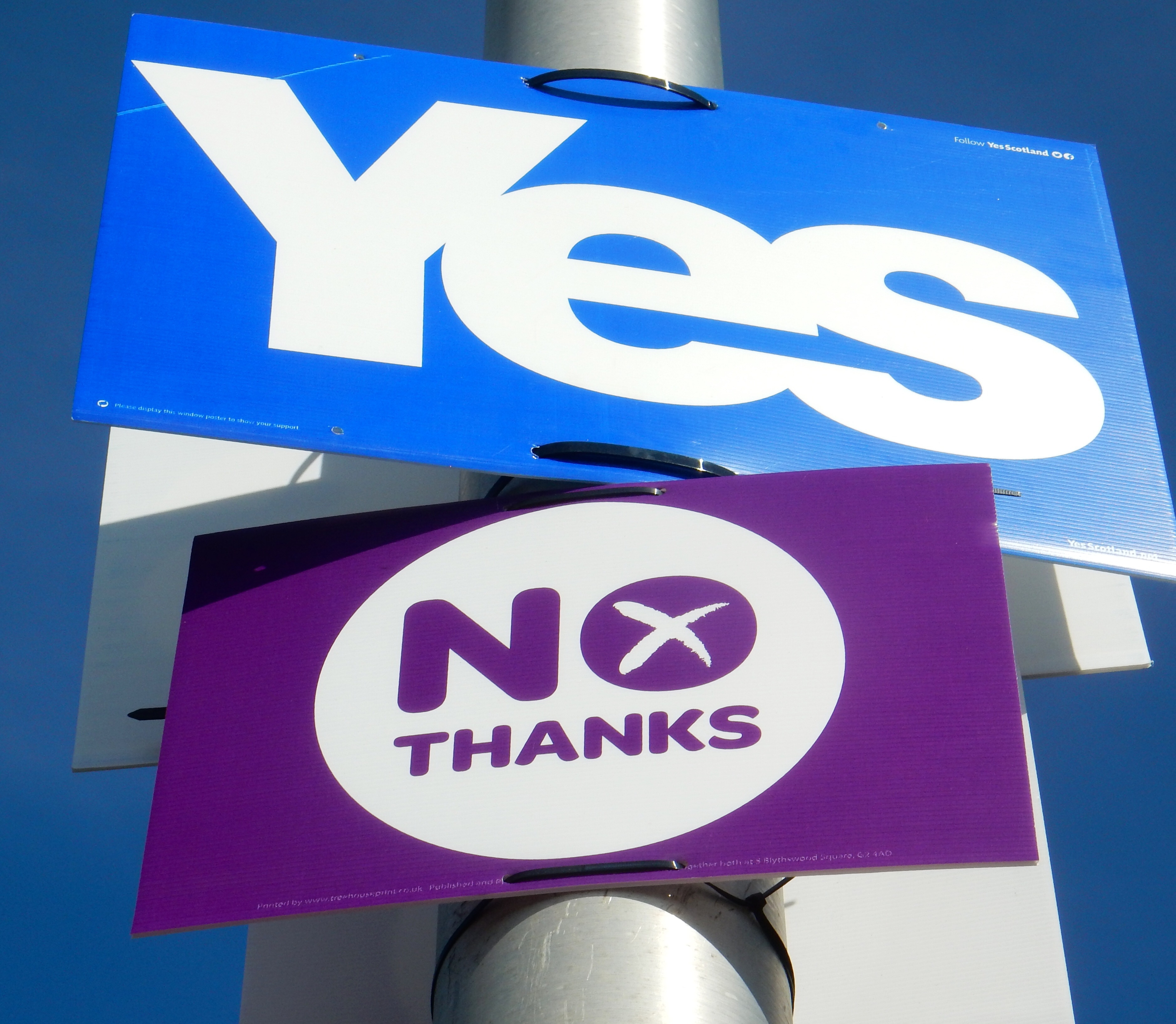 I must say, as a non-affected outsider, the yes campaign is clearly running smarter and with more grassroots support. They were clever to adopt Scotland’s flag colors. Large yes signs are posted in the most remote areas of Scotland. Meanwhile, the no perspective is largely invisible. I have a sense the no voters are voting their pocketbooks and are a little embarrassed to be voting against independence. It’s almost like voting against Scotland.