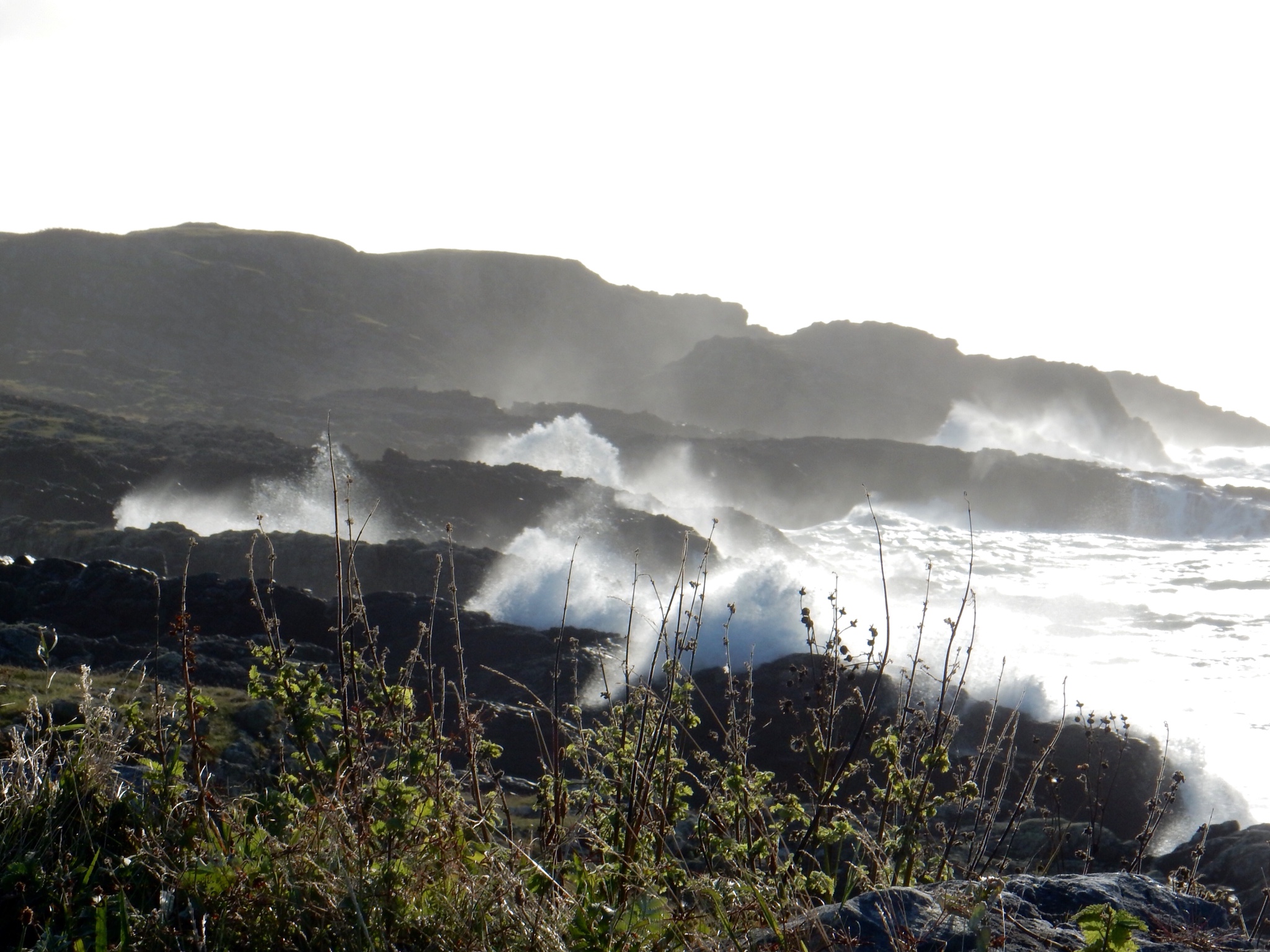 I stayed at a farm-based B&B near Port Charlotte. The owner explained that many of the island’s three-thousand residents are engaged in multiple occupations to make ends meet. His included raising cattle and sheep, running a B&B, transporting livestock, and construction. Visited the twin villages of Portnahaven and Port Wemyss on the southern tip of Islay’s western peninsula. They pose for postcard views, complete with jagged rocks, roaring waves, and lighthouses. One after another, monster waves sprayed plumes of water high into the air as they smashed against the rocks. I saw a seal fishing in the channel and then spotted twenty of his buddies huddling on a sandy beach across the water. They were moaning into the wind.