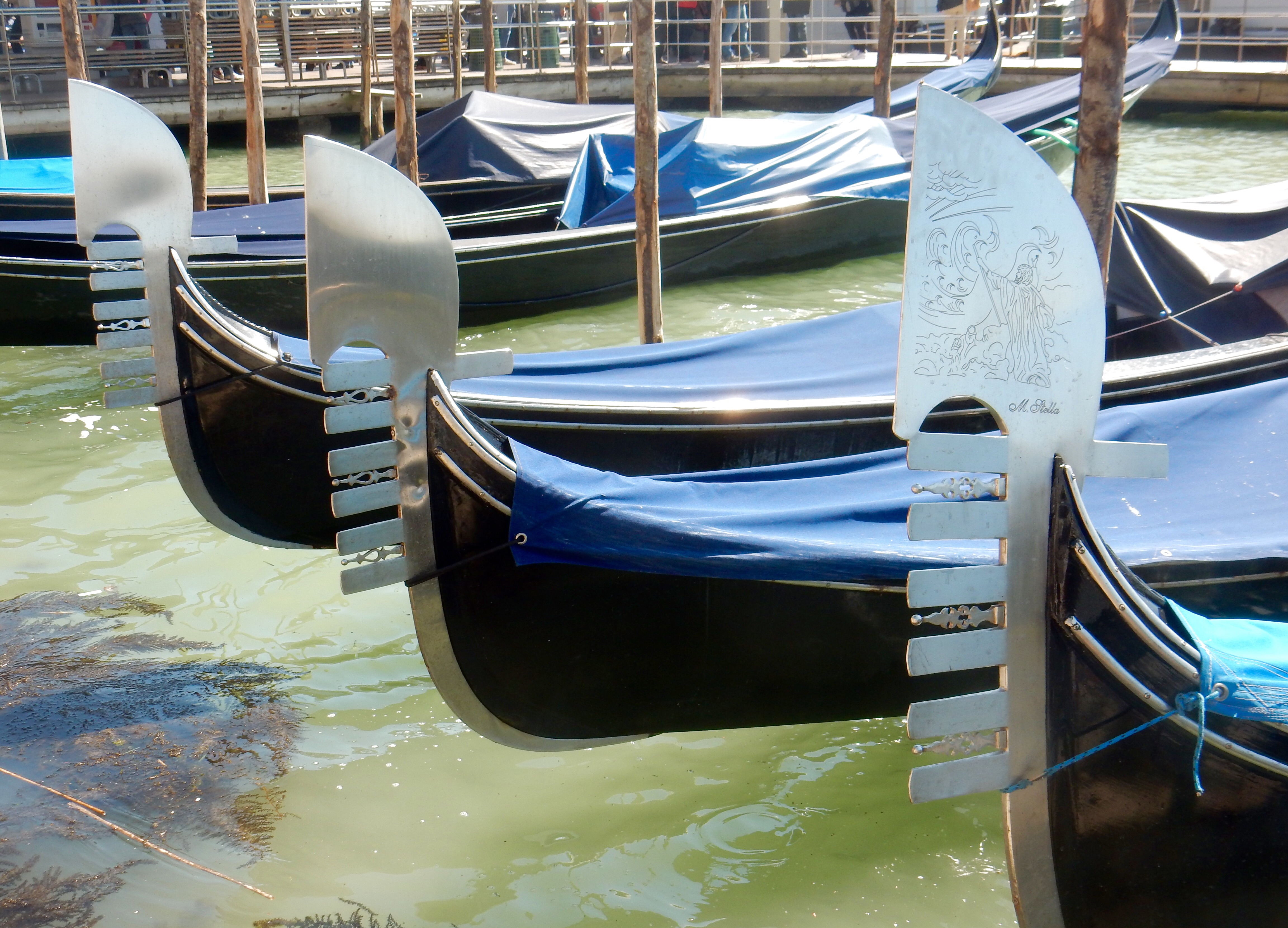 Gabriele, the manager of the hotel where I stayed, explained the meaning of the shape of the fèrro, the metal prow on the front of gondolas. It’s S-shaped like the Grand Canal with six teeth representing Venice’s sestieri (six districts). He proudly showed me an antique fèrro and fórcola (oarlock) on display in the hotel.