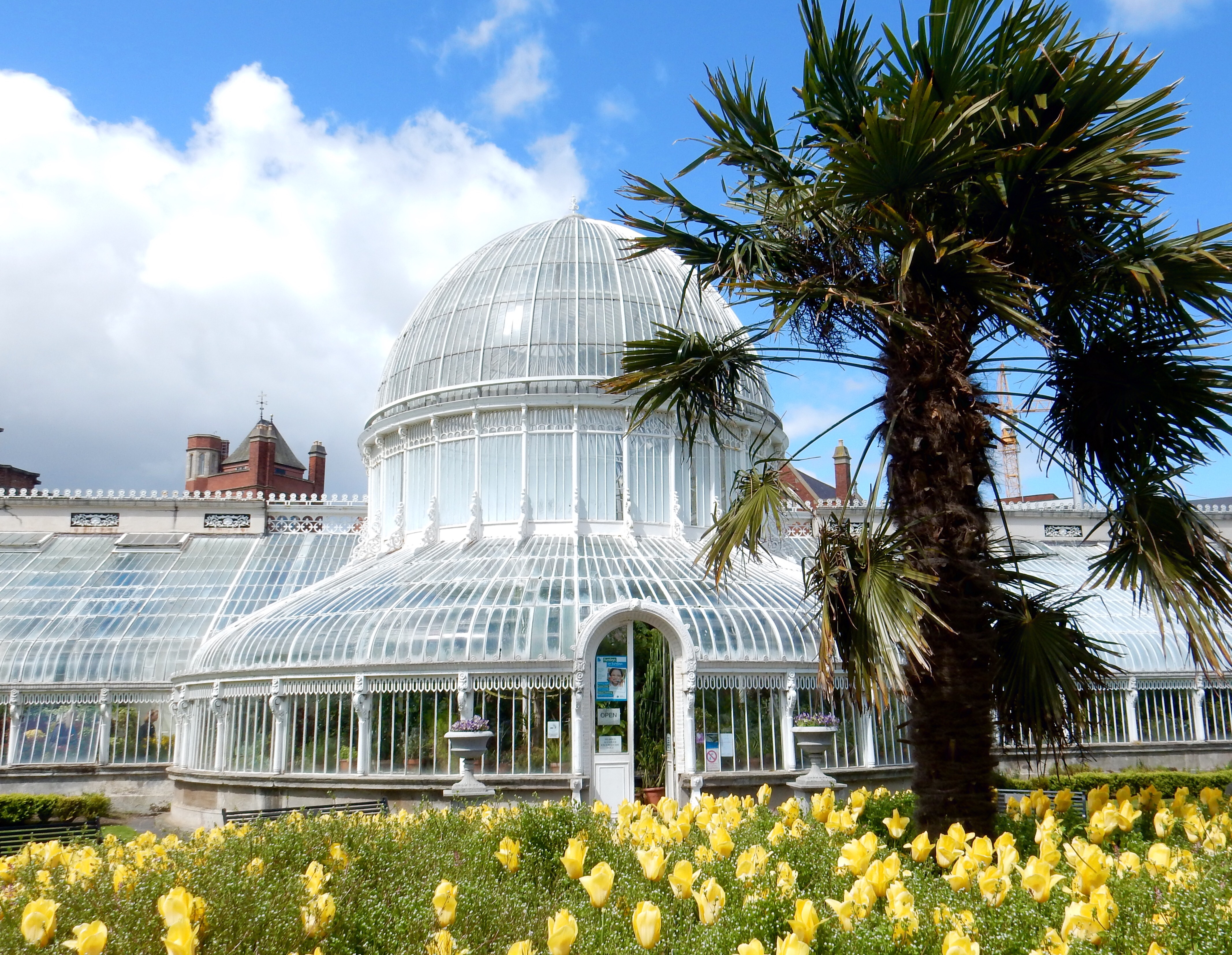 Belfast’s ornate City Hall opened in 1906, following Queen Victoria’s conference of city status upon Belfast. A statue of her stands in front. The 1613 original charter of Belfast granted by King James I is on display inside the main entrance. The Great Hall was largely destroyed in WWII by German bombers that were aiming for the shipyards. On a tour of the elaborate Council Chamber, I was invited to sit in the Lord Mayor’s chair. The seats of the opposing parties are separated by “two sword’s lengths.”