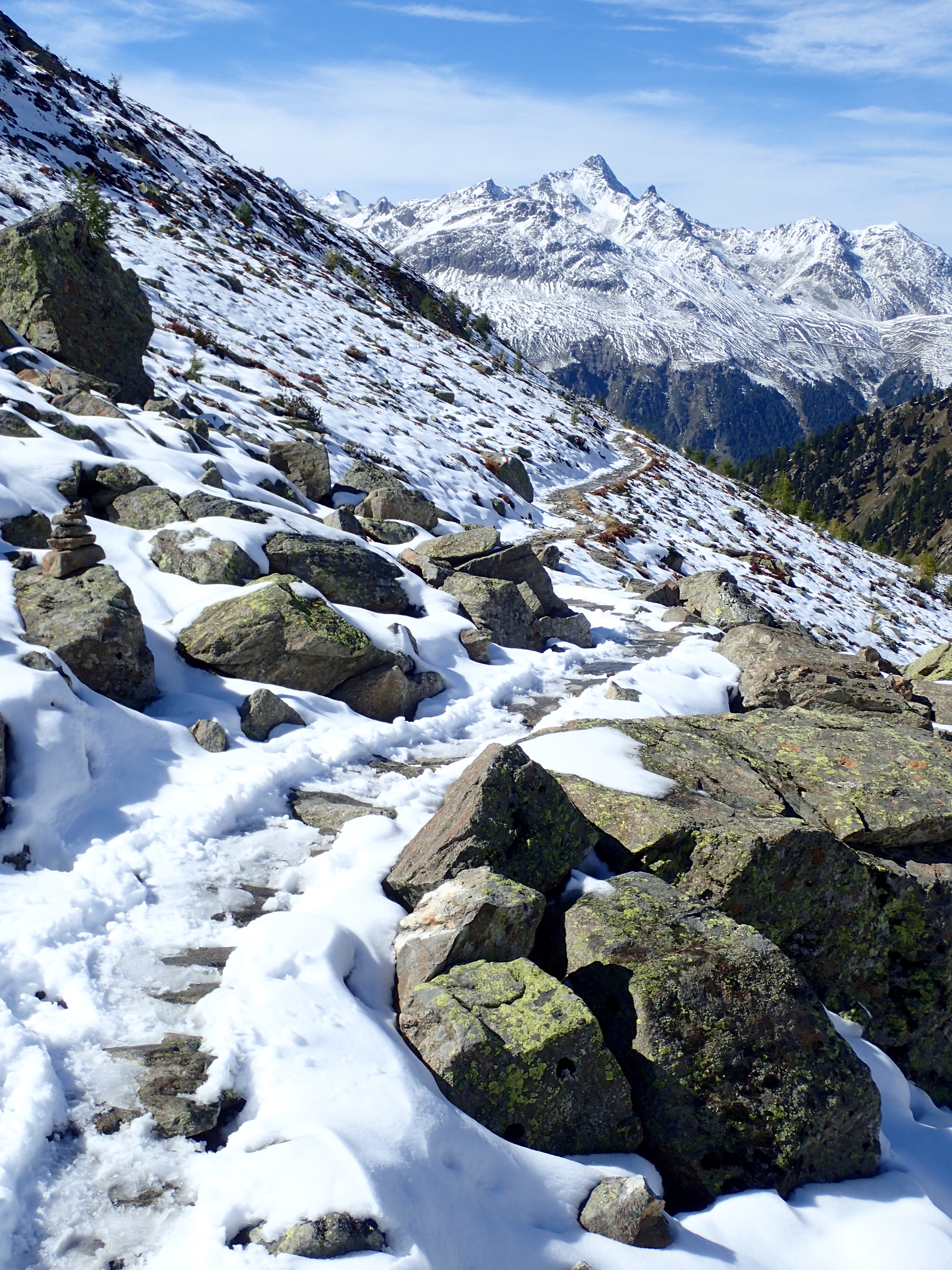I wanted to hike the trail from Muottas Muragl to Alp Languard, but it was slippery with ice and a long way down. I watched several serious-looking trekkers attempt it and turn back. Another day.