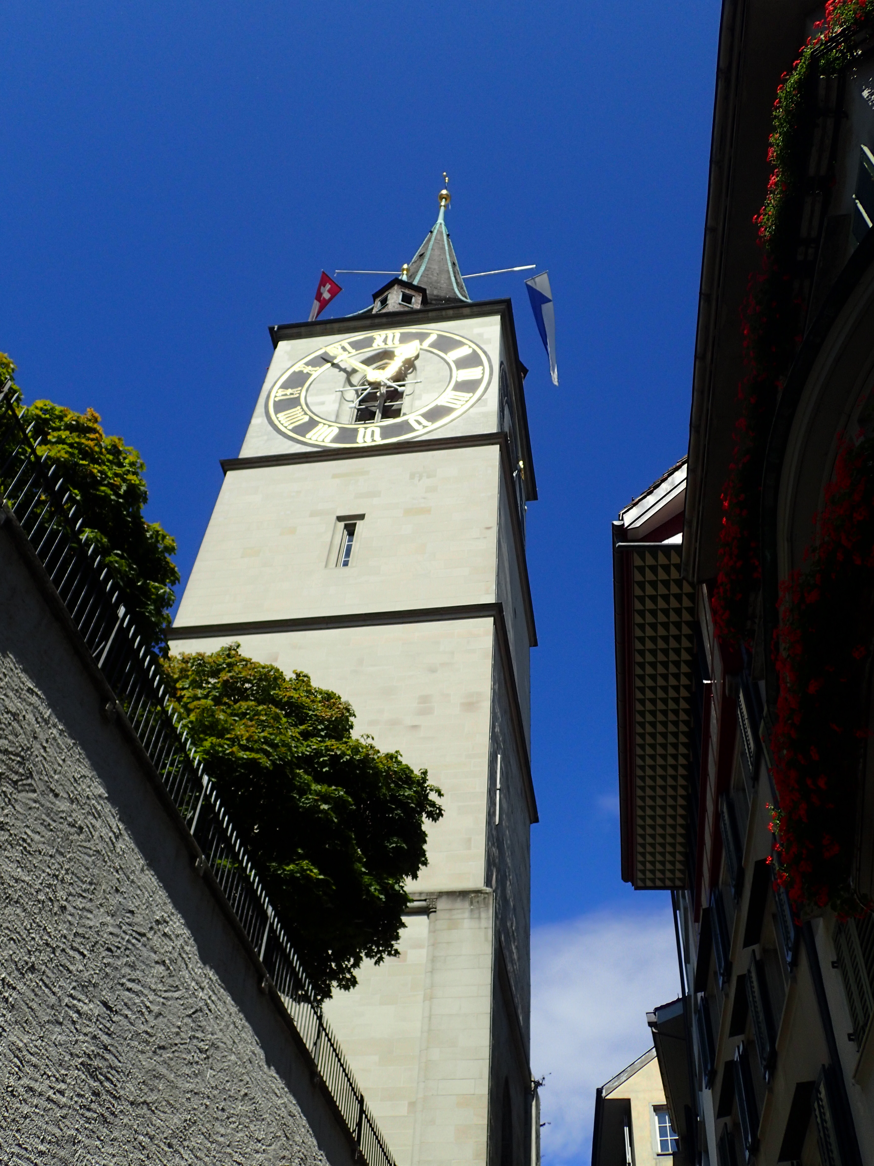 I crossed the river over one of the many footbridges to visit the Niederdorf district. Niederdorf, like most European old towns, is a maze of narrow hilly cobblestone streets, lined with trendy shops and cafés.