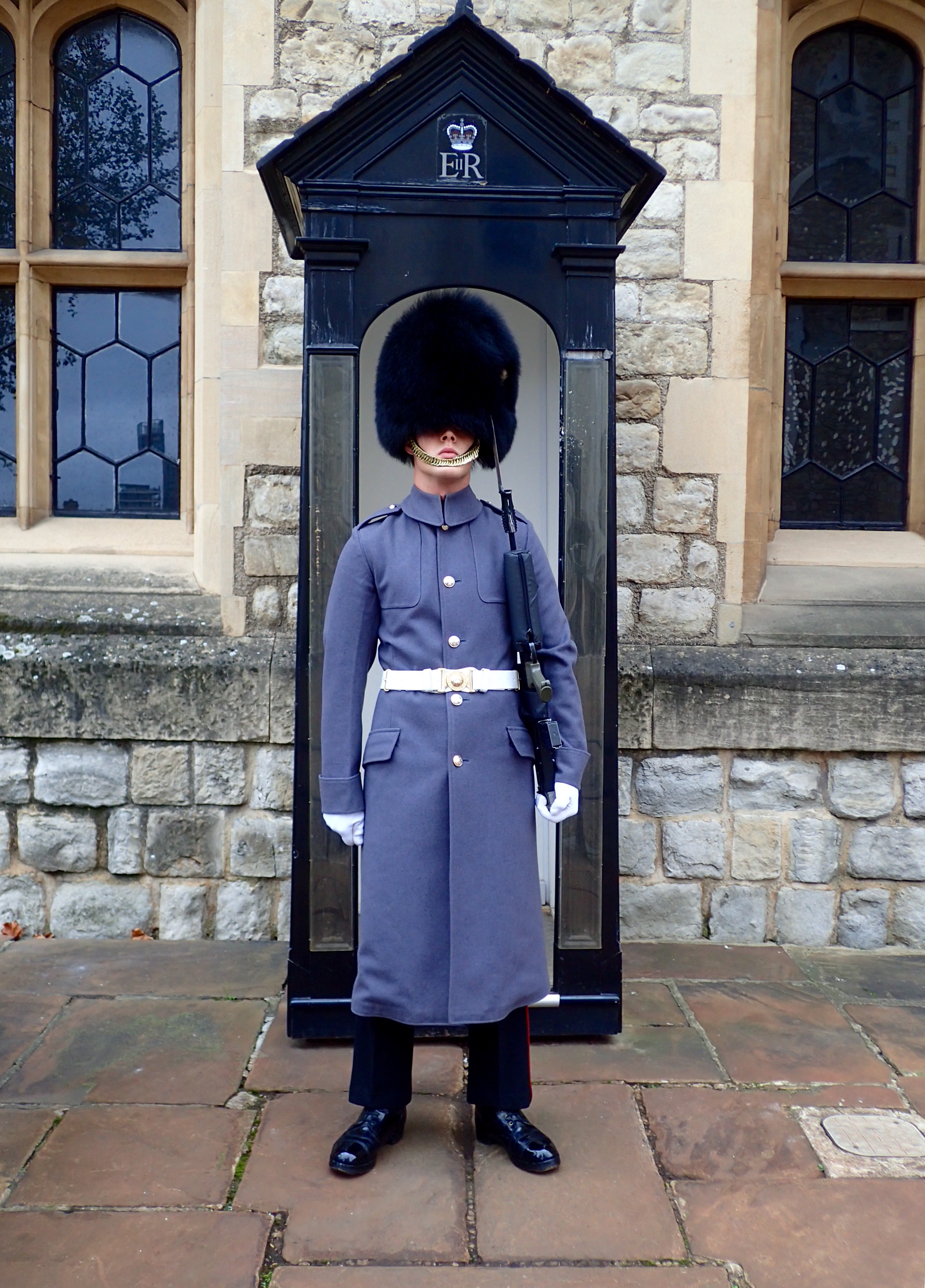 • Horse Guard Ceremony, known officially as the Changing of the Queen’s Life Guard. I watched them face off, a squadron of Life Guards, wearing red tunics and white-plumed helmets, and a squadron of Blues and Royals in blue tunics and red plumes. The Four O’Clock Parade started in 1894 when Queen Victoria found the guards drinking and gambling while on duty. As punishment, she ordered them to be inspected every day at 4 p.m., apparently forever.