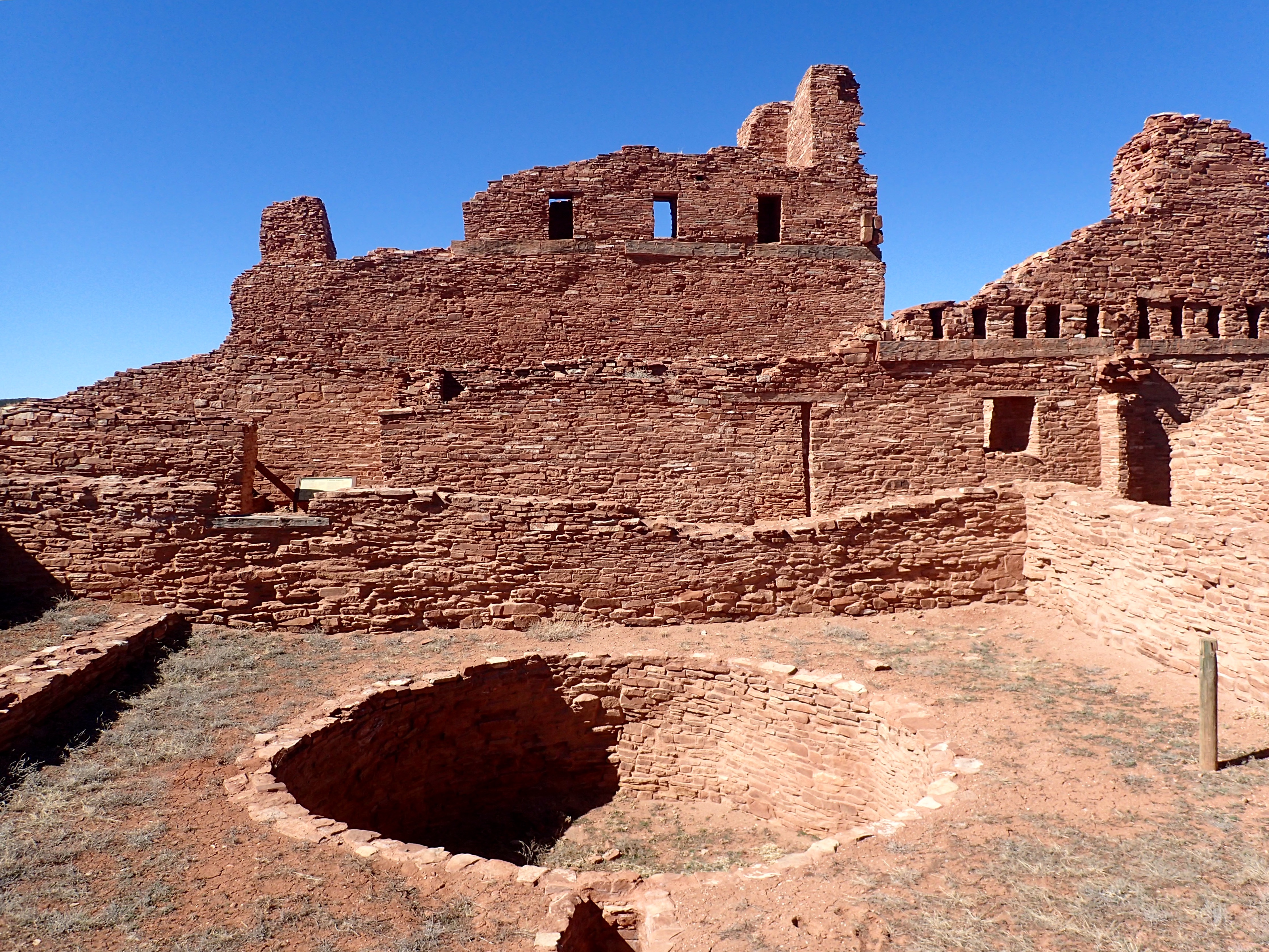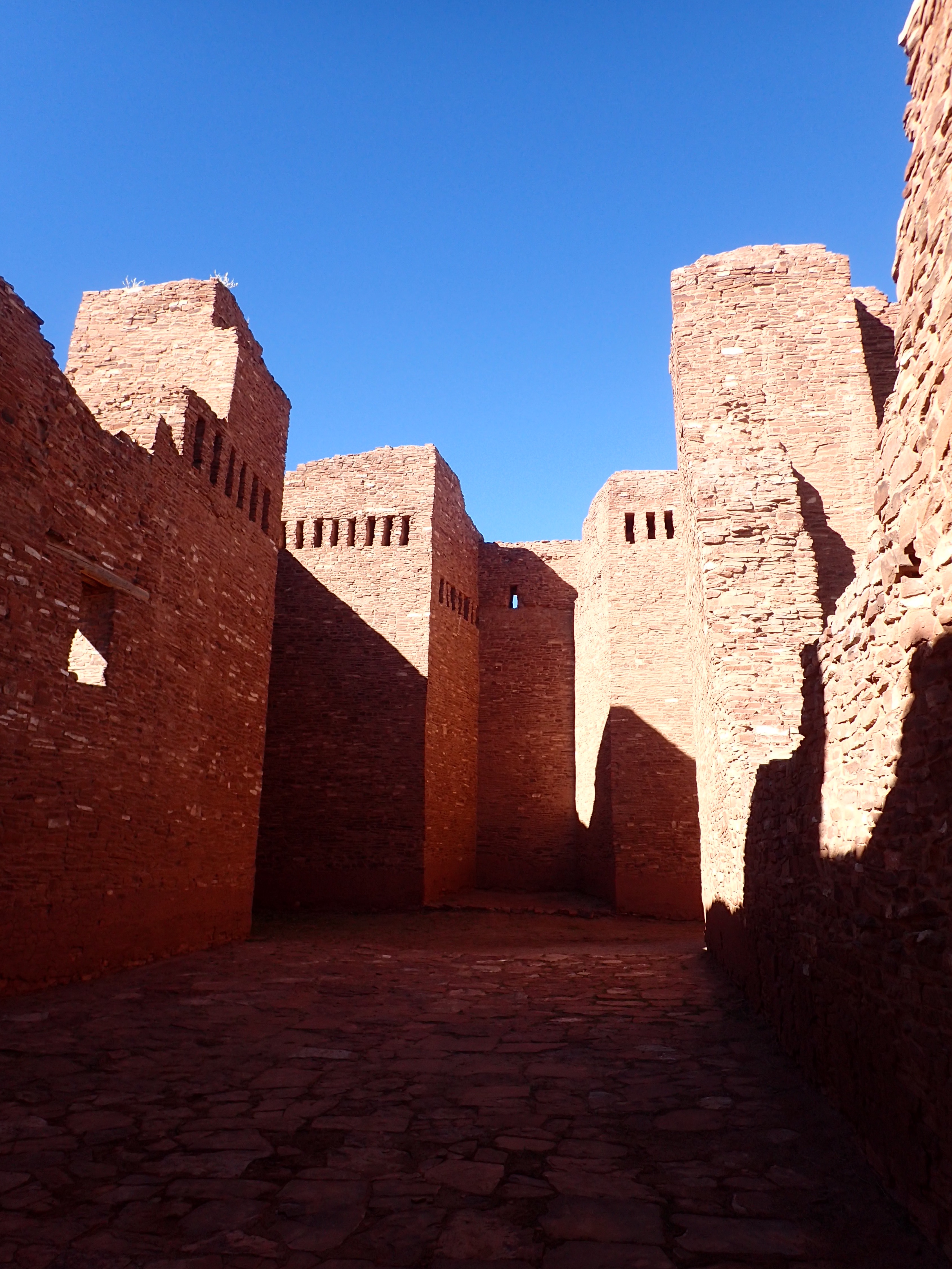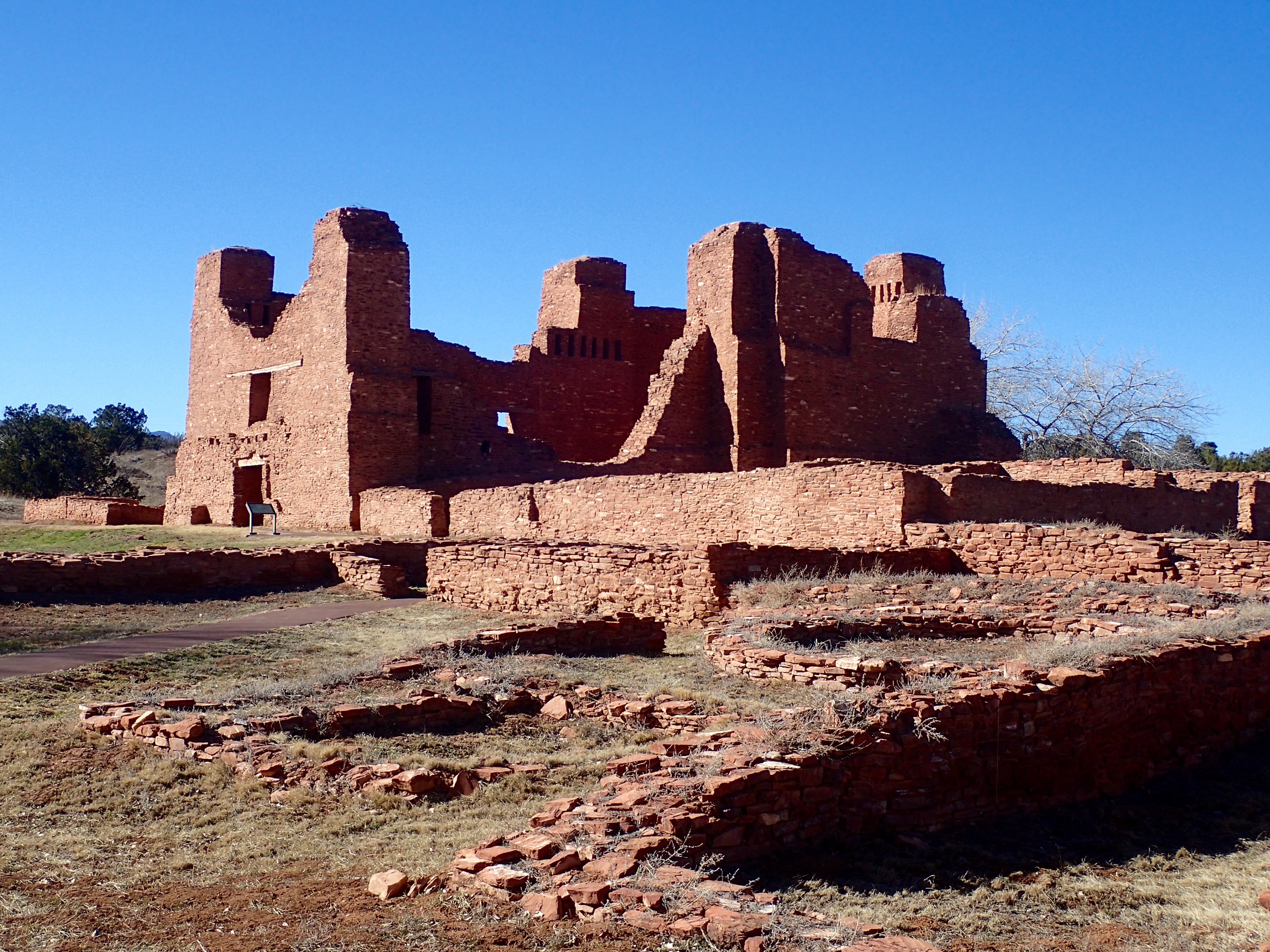 I drove for two hours on desert highways past desolate ranches to visit Salinas Pueblo Missions National Monument. The monument consists of three sites with pueblo and mission ruins at each. In the 1600s more than ten thousand Puebloans lived in the Salinas area.