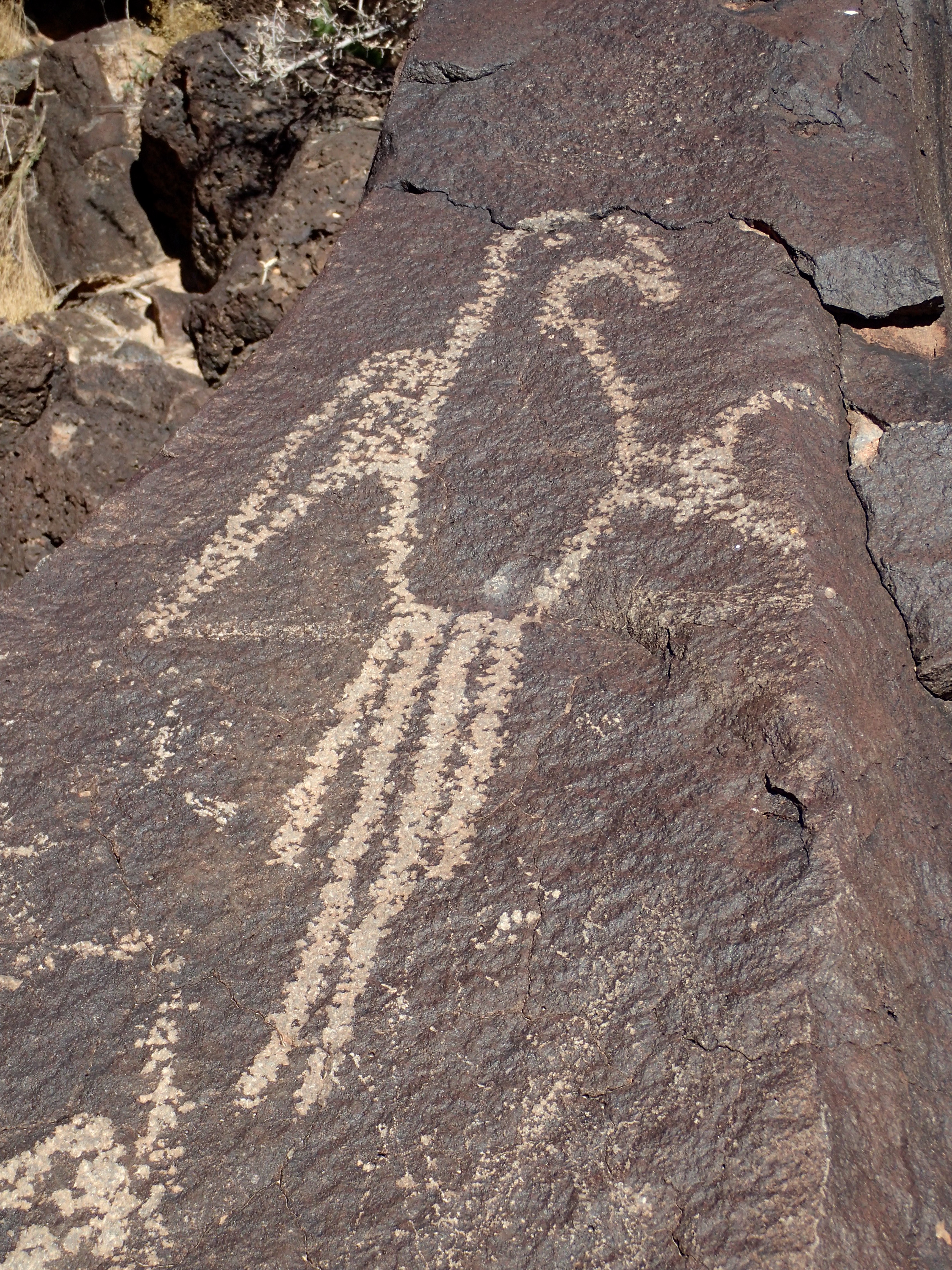 At Boca Negrada Canyon I climbed narrow trails around house-sized rocks covered with ancient images. Later I walked the Rinconada Canyon, a two-mile loop. Numerous petroglyphs could be seen on the boulders a short distance from the trail.