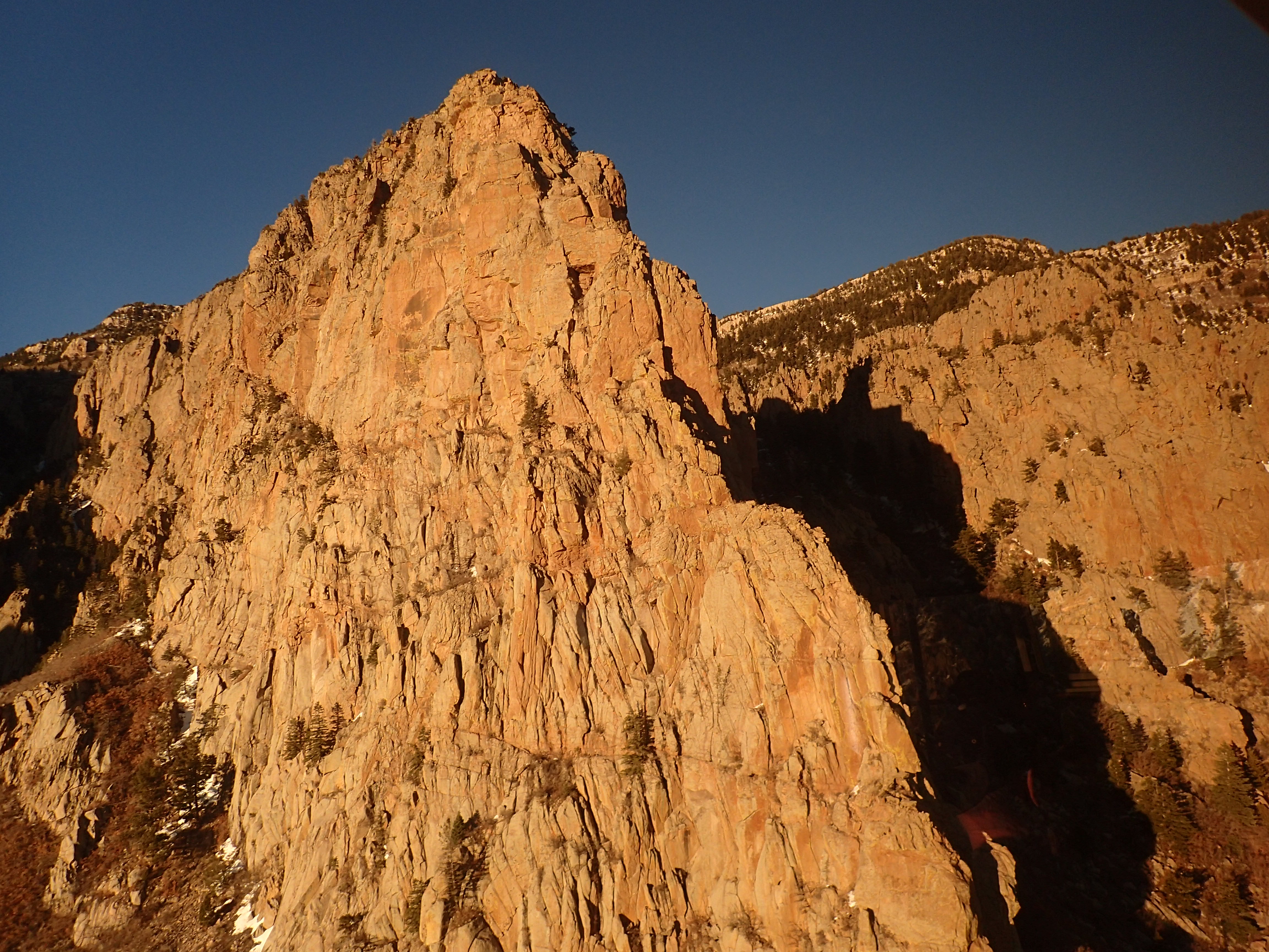 Northeast of town, a Swiss-engineered aerial tram sweeps you to the top of the Sandia Mountains, a four-thousand-foot increase in elevation, topping out at over ten thousand feet. Fifty passengers per car.