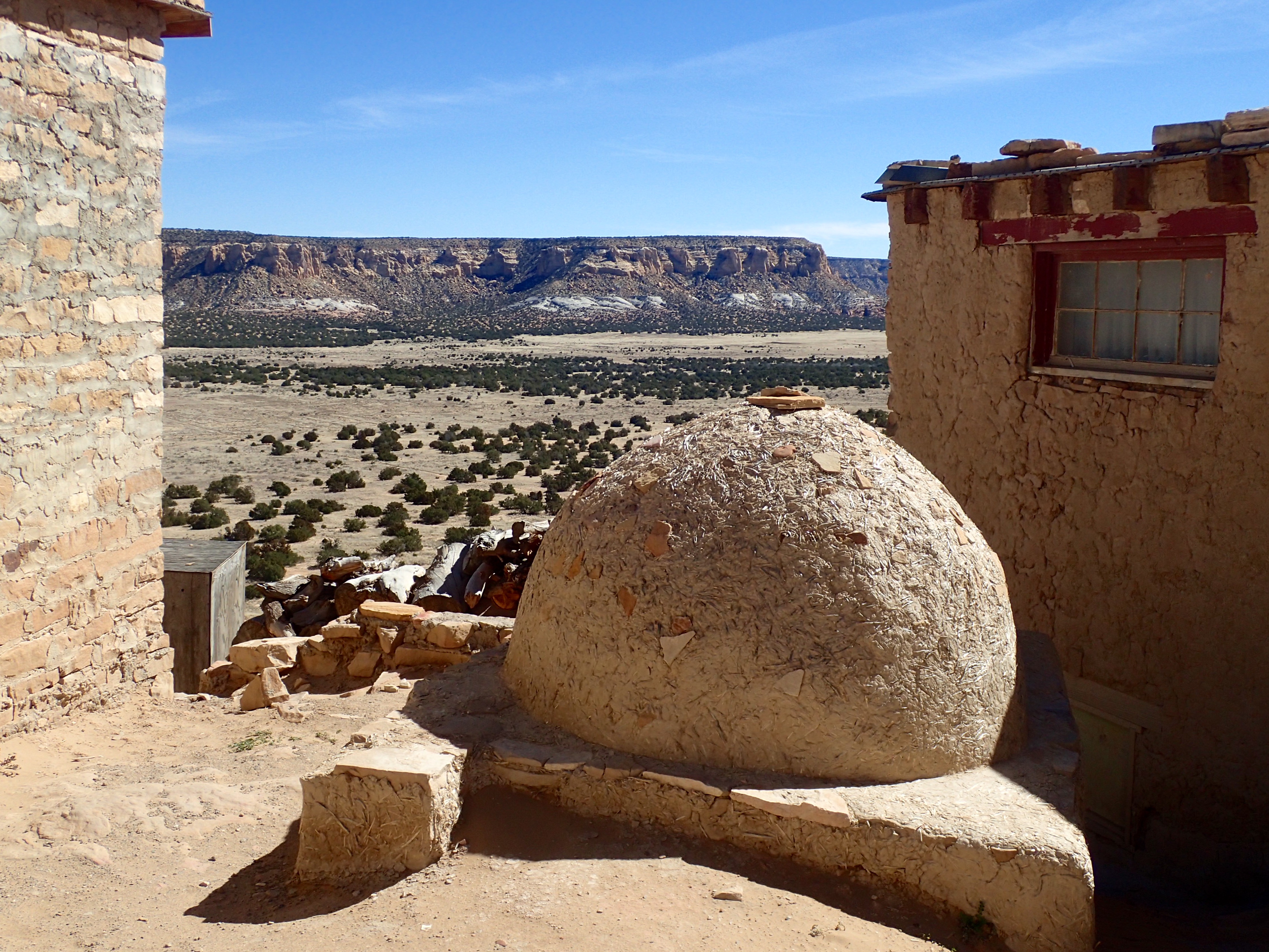 In 1629, construction began on the huge San Esteban del Rey Mission, which, along with the pueblo, is a Registered National Historic Landmark. The ceiling is supported with huge ponderosa-pine logs. The walls are whitewashed adobe, several feet thick. We were not allowed to take photos inside the church or in the graveyard.