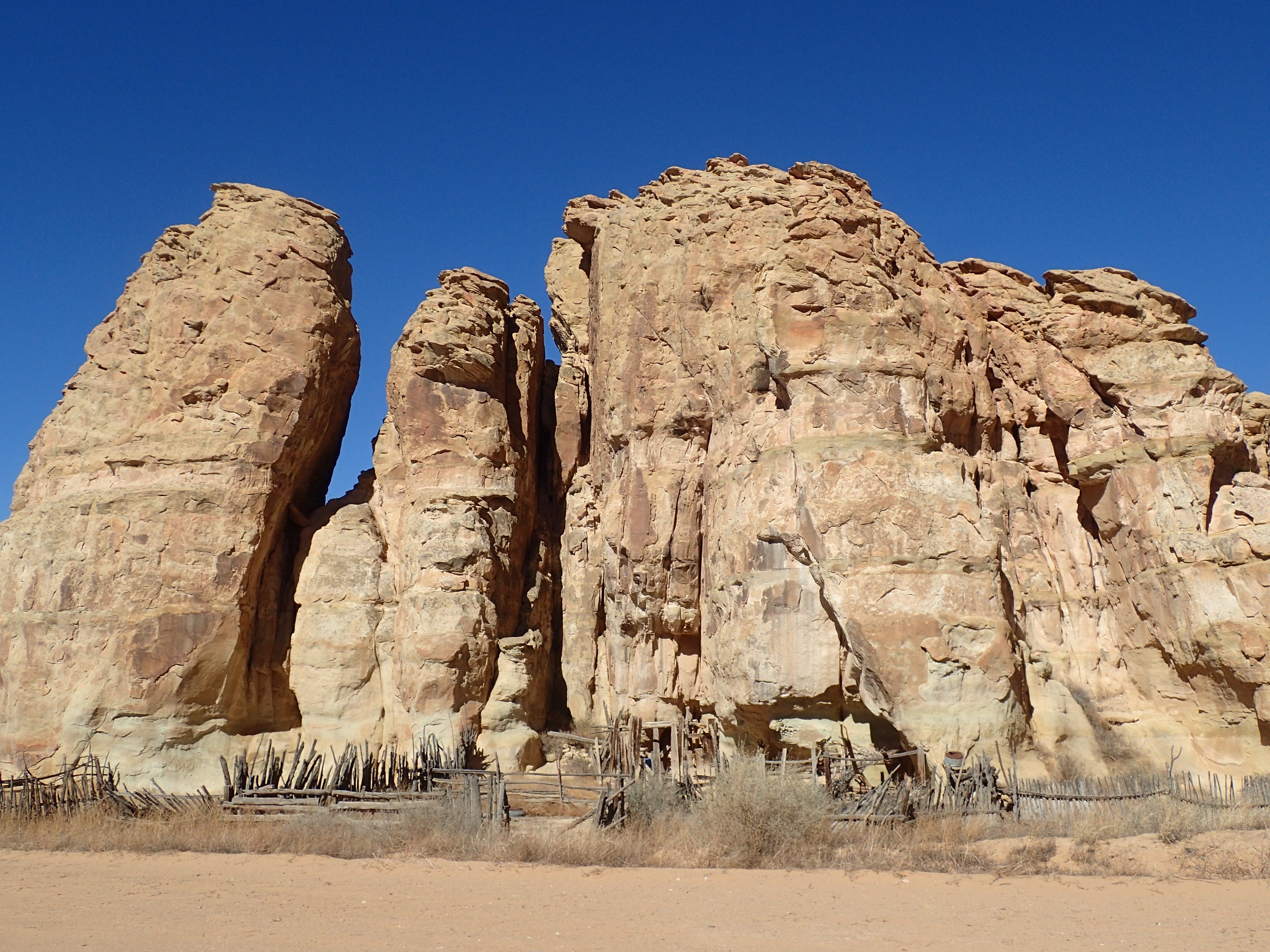 Historically the only access to the pueblo was by climbing one of eight sets of hand and toeholds, gouged into the vertical rock face. Since then, a road has been cut to accommodate Hollywood. At least three movies have been filmed at Acoma, one in the ’30s, one in the ’50s (starring John Wayne), and one in the ’70s (Henry Fonda).
