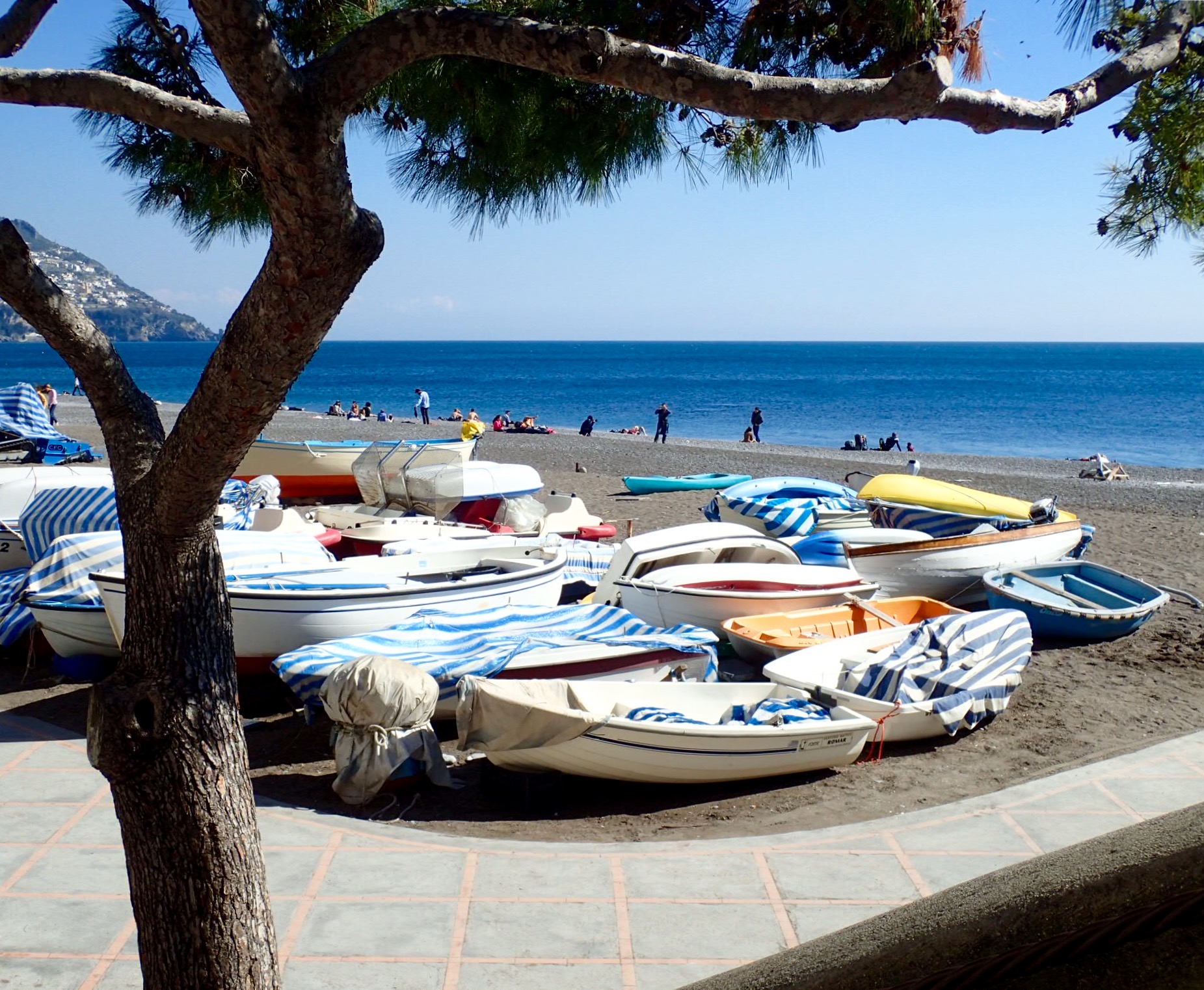 There are no streets in Positano. The main road to the town clings high to the sides of the mountains, never daring to get closer. From there, the buildings seem to tumble downhill toward the pebbly beach.