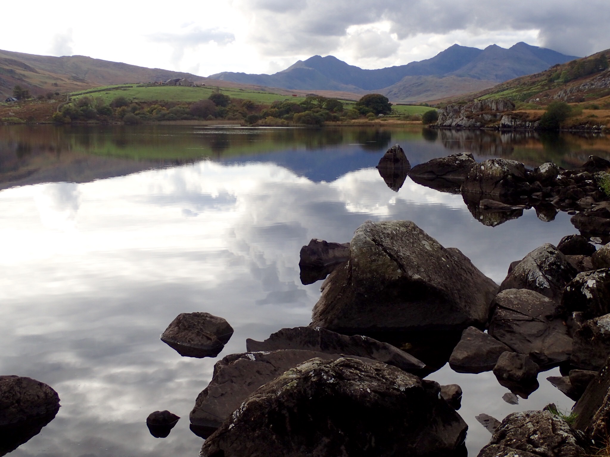 Later, I walked along one of Beddgelert’s rivers, Afon Glaslyn, full of rapids and ripples. A beautiful fall day, the leaves turning gold. Along a slippery stone ledge called the Fisherman’s Path, metal handholds were screwed into the rock face for safety.