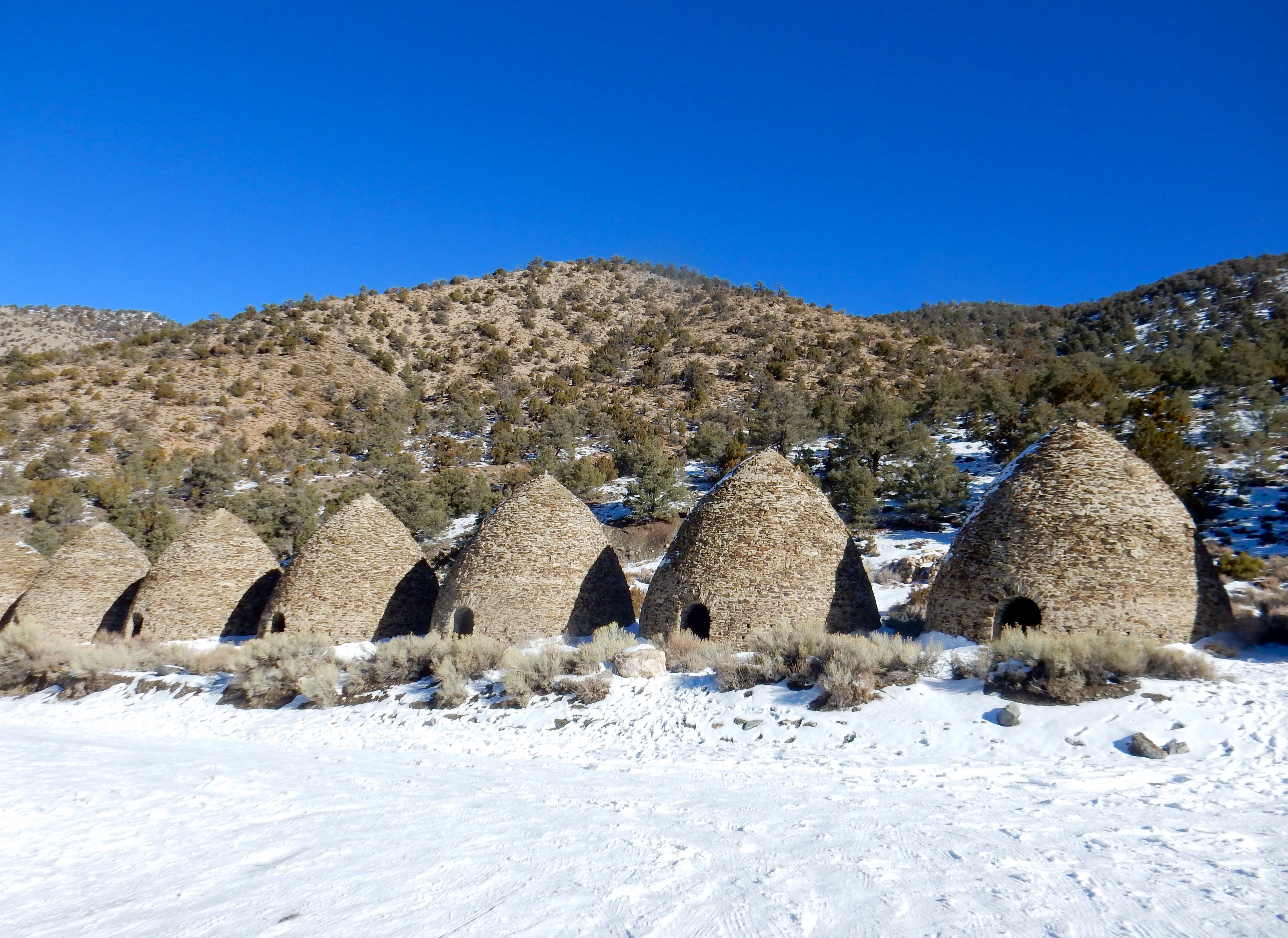 The kilns look otherworldly, like Stone Age spaceships. Ten of them in a row, twenty-five-feet high and thirty feet in diameter. They were built in 1877 to produce charcoal for use in extracting silver and lead from ore.