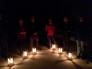 On the way out, Mark conducted a blackout session so we could experience the absence of light and sound. We sat in a circle in the dirt, our lanterns in front of us on the ground.