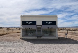 “Prada Marfa” is an art installation, a permanently installed sculpture along a desolate stretch of US Route 90. The sculpture is made of bricks and mortar. The merchandise was personally selected by Miuccia Prada.
