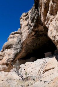 On a sunny Sunday morning with little traffic, I drove from Silver City into the park to visit the cliff dwellings. The trail to the ruins follows a stream into a canyon and then a steep, rocky slope along the face of a cliff.