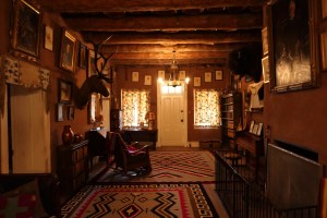 The Hubbell home was grander inside than I expected, with high ceilings, a large stone fireplace, Navajo rugs, and western-themed paintings. Hubbell’s collection of Native American baskets is displayed on the ceiling.