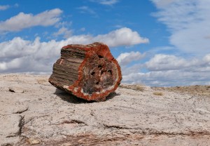 Now they are fossilized logs, scattered among 230 square miles of desert. Some are huge, as thick as ten feet and as long as two hundred. Most are stumpy cross sections.