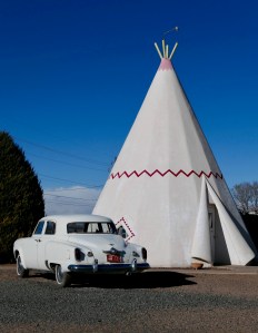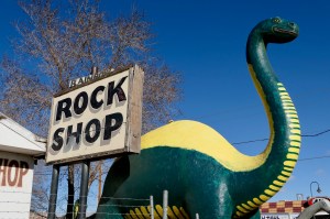 The streets of nearby Holbrook are lined with additional remnants of Route 66’s heyday, such as the kitschy Wigwam Motel and its concrete tepee-rooms. Statues of dinosaurs guard piles of petrified wood in front of numerous rock shops.
