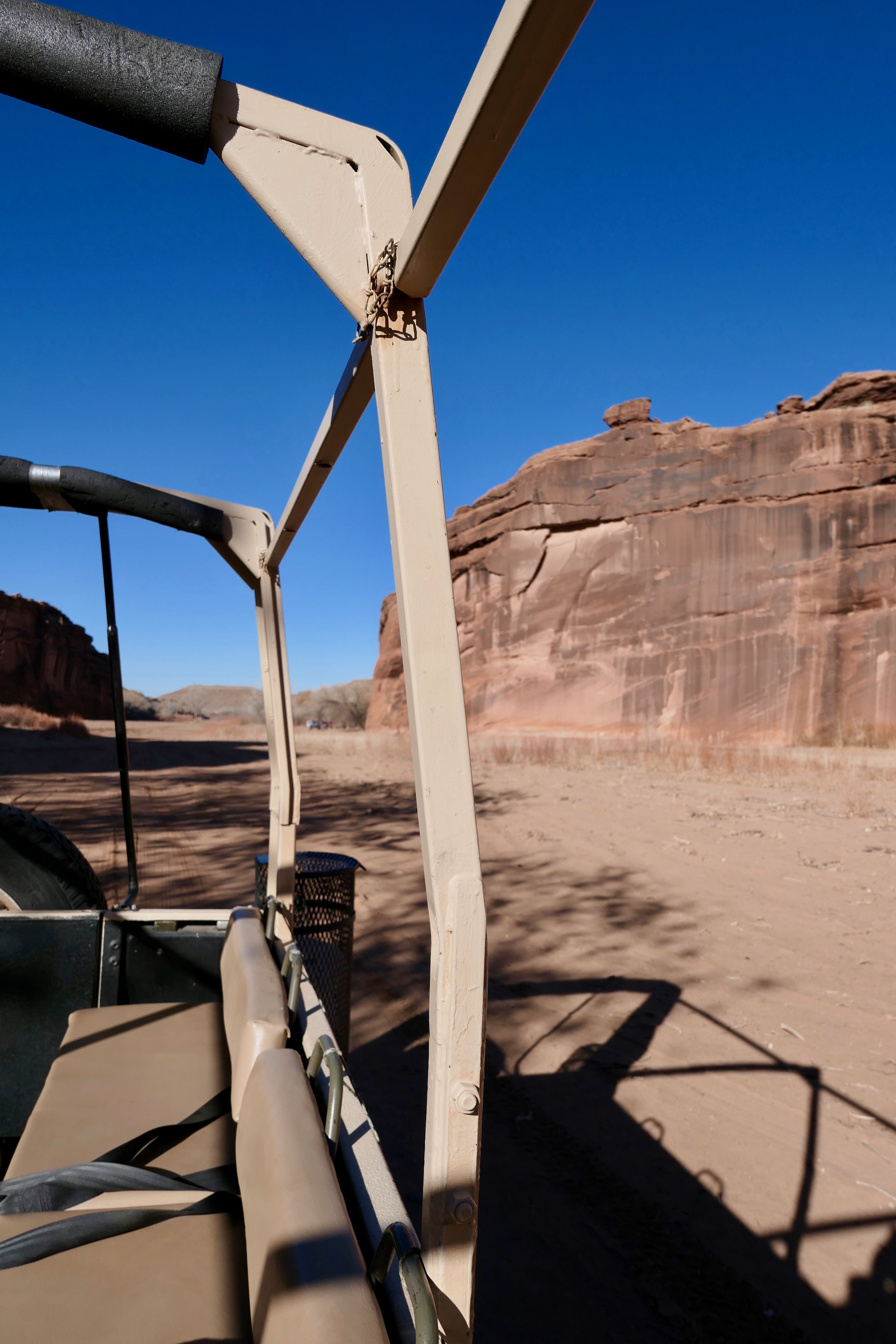 Our small group of three climbed into the back of an open-air 1973 military-surplus Pinzgauer troop carrier, built in Austria. It had six-wheel drive, useful for plowing through deep sand and rocky washes.