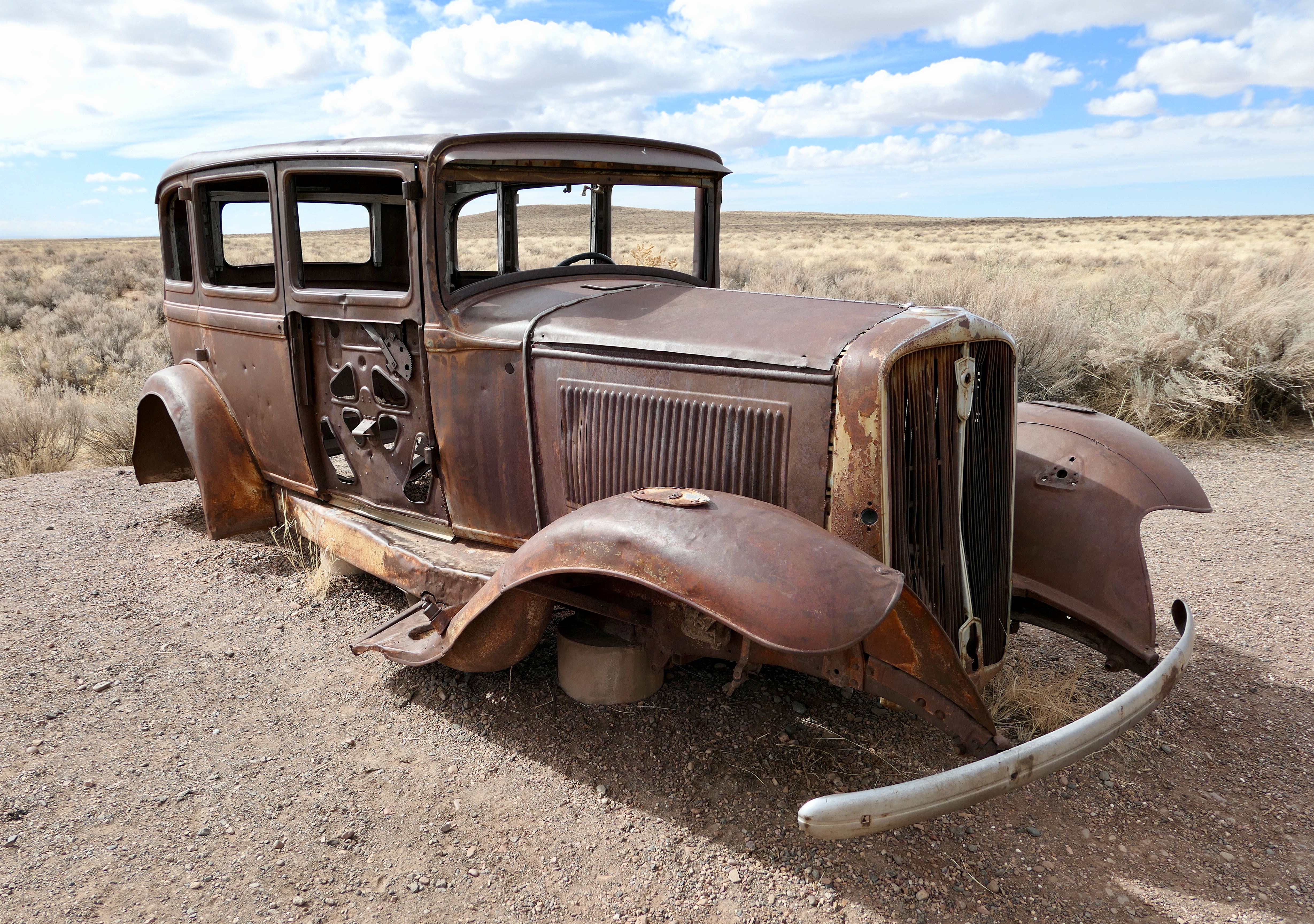 I stopped at the Painted Desert Inn to admire the view. Built partly with petrified wood, the inn opened in the 1920s as a tourist attraction. In the 1940s and 1950s, it was an oasis for Route 66 travelers. Today, a rusty 1932 Studebaker marks the spot on the roadbed where Route 66 once ran through the park.