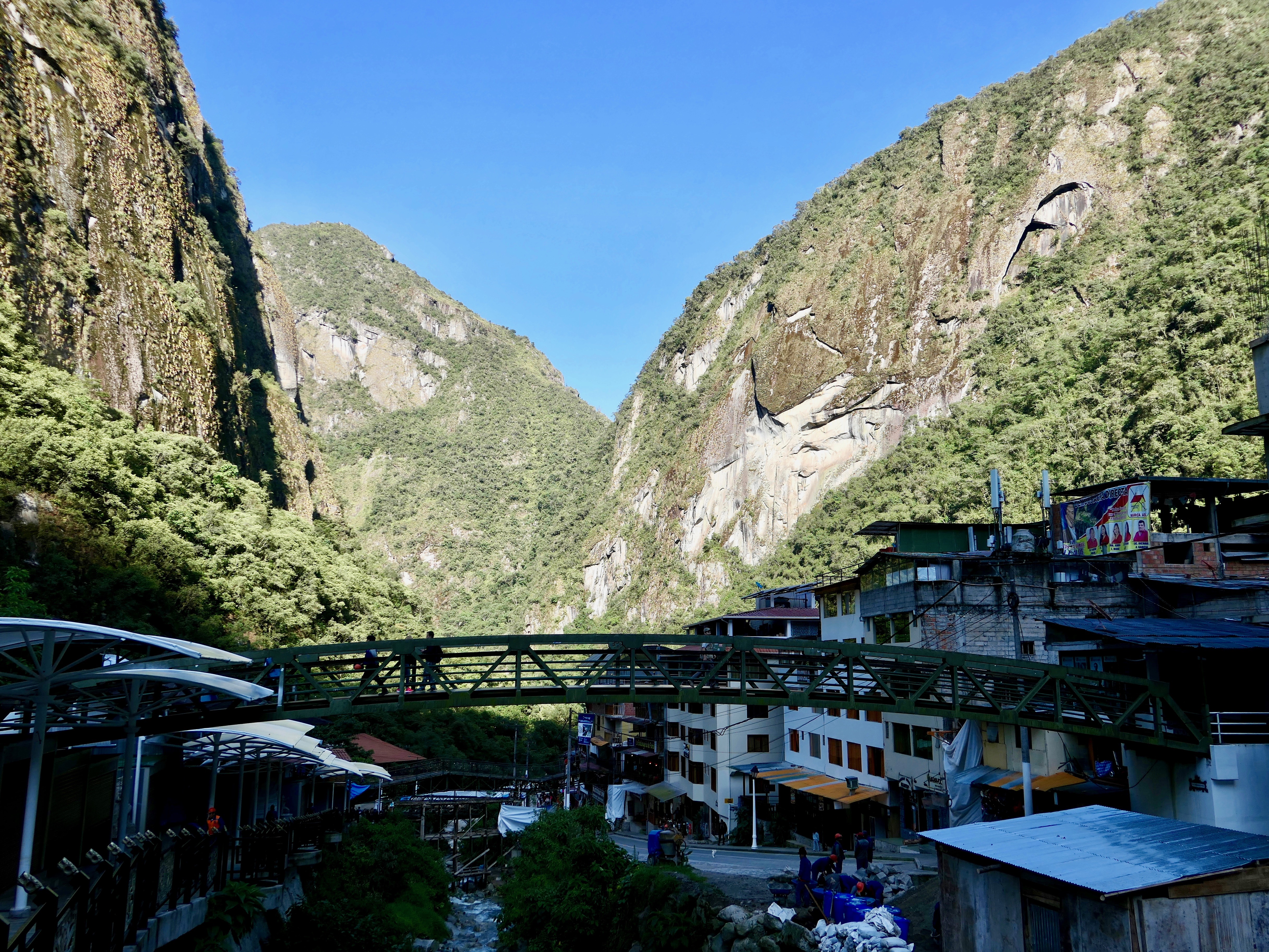 Aguas Calientes is the most convenient access point to Machu Picchu. The town sits between stone cliffs along the Urubamba River at 1¼ miles high. Its population is around one thousand.