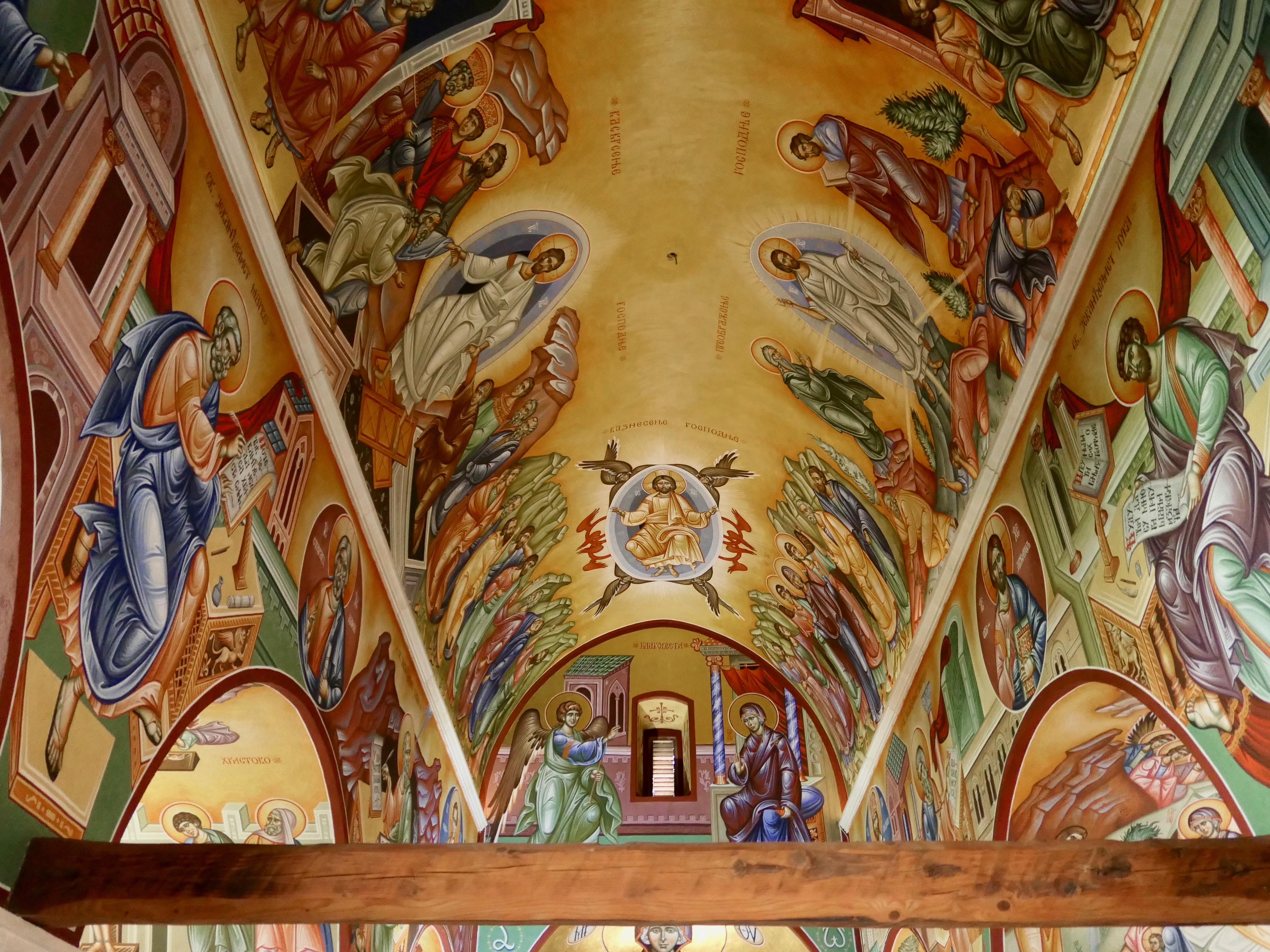 We visited Žitomislić (ZHEE toe meez leetch), a Serbian Orthodox monastery near Mostar. A tall, soft-spoken, bearded monk in a black robe allowed us a look at the colorfully frescoed church.