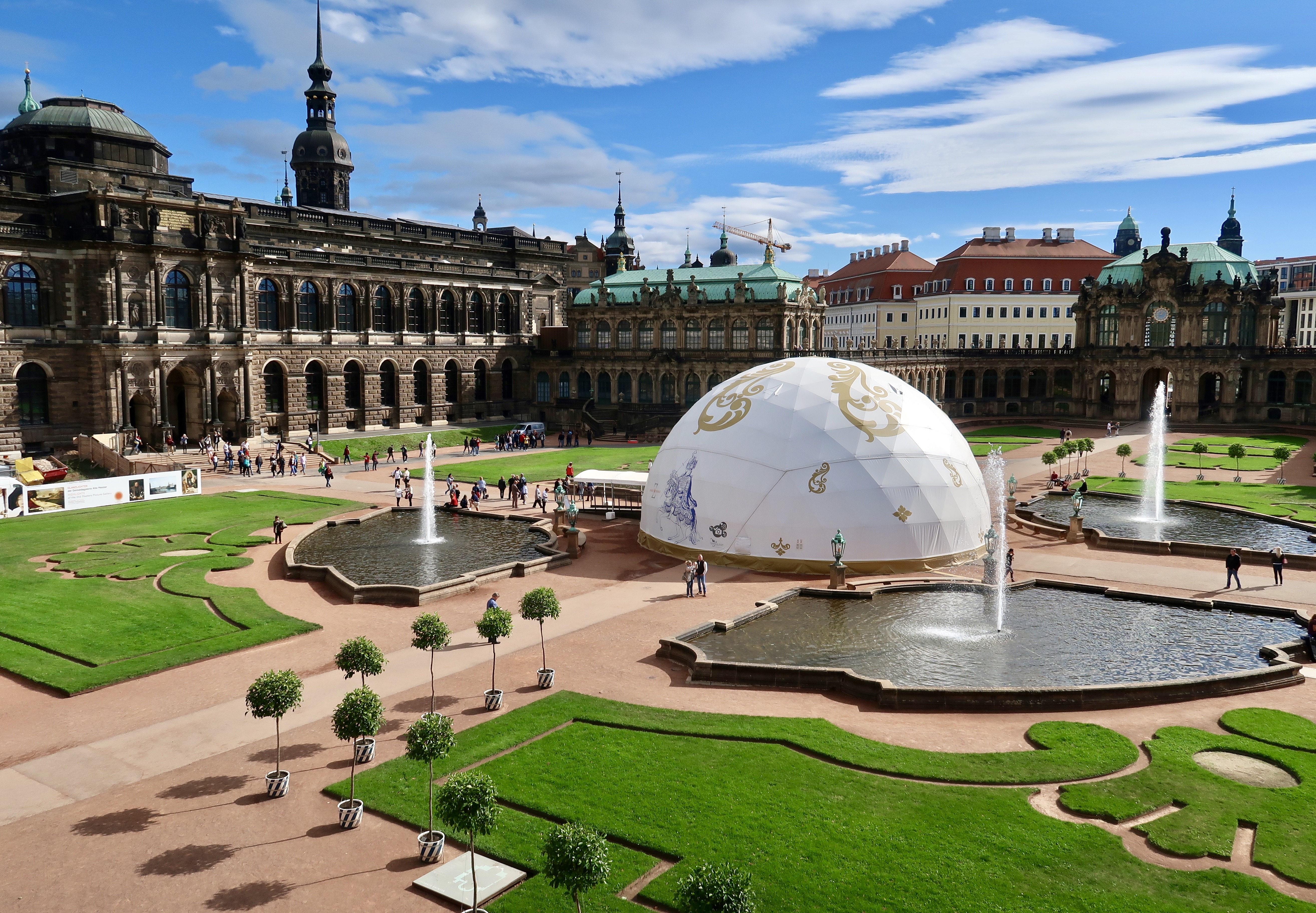 The compound was mostly destroyed by the 1945 bombings. However, the huge art collection had been previously evacuated for safekeeping. Today, the rebuilt Zwinger is a popular venue for concerts and festivals.