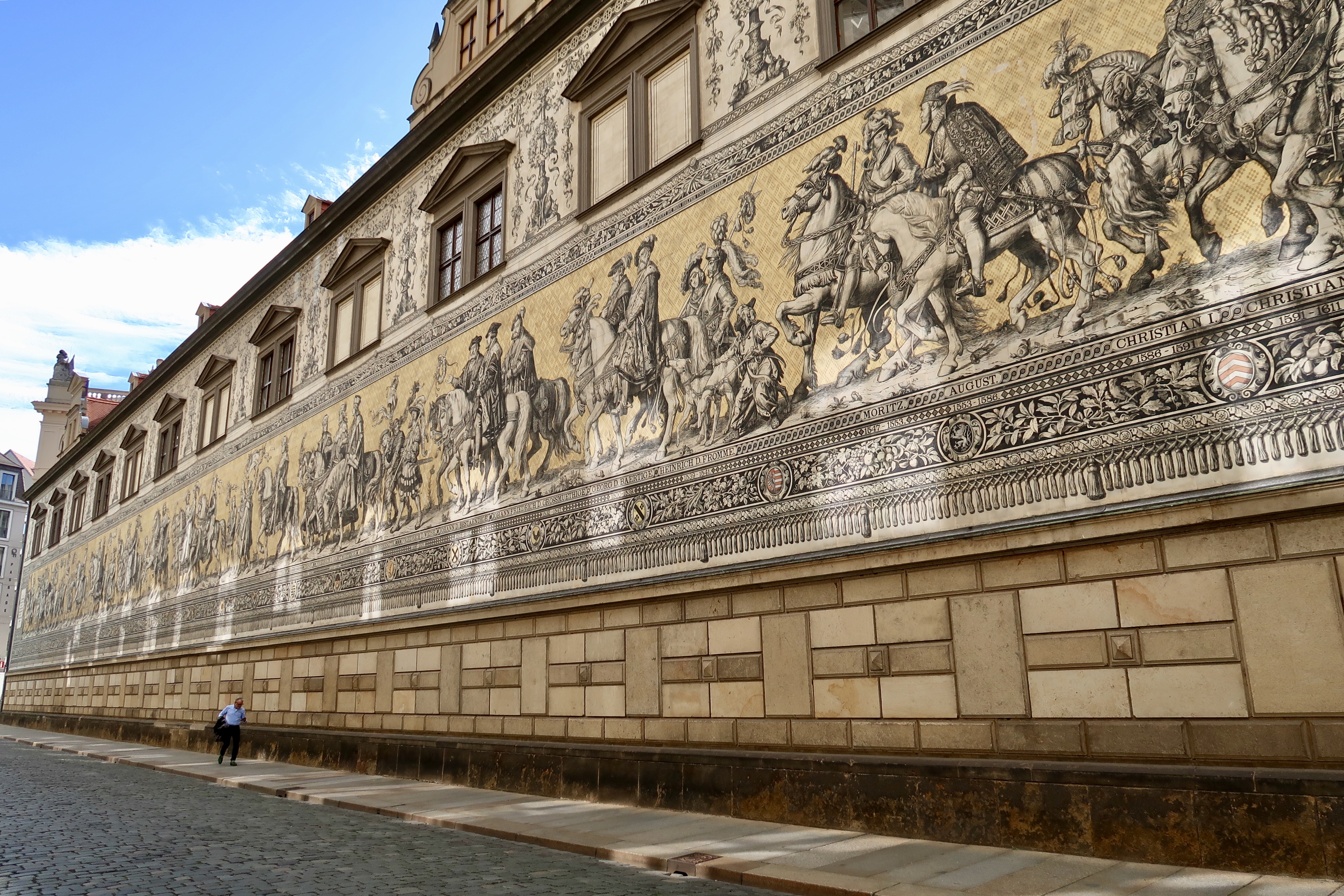 One landmark that incurred only minimal damage from the bombings is the Procession of Princes, a mural depicting seven centuries of Saxon royalty. The parade of portraits includes not only kings, but anonymous craftsmen, farmers, and children.