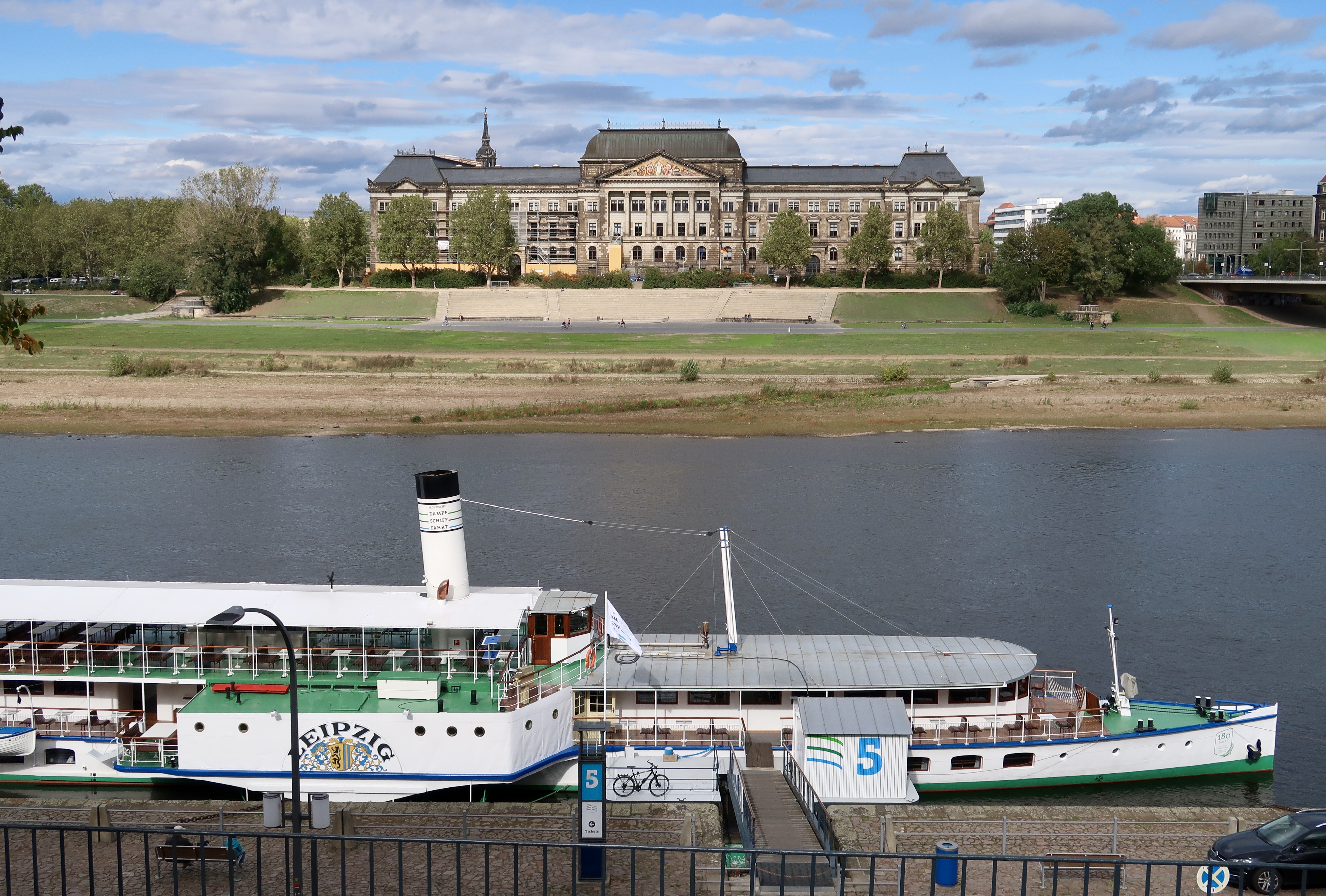 I wandered among the regal monuments. Locals and visitors enjoyed sausages, pretzels, and beer under linden-tree canopies. Long paddle wheelers lined the riverbank. A golden statue of Augustus on horseback appears to be galloping toward Poland.