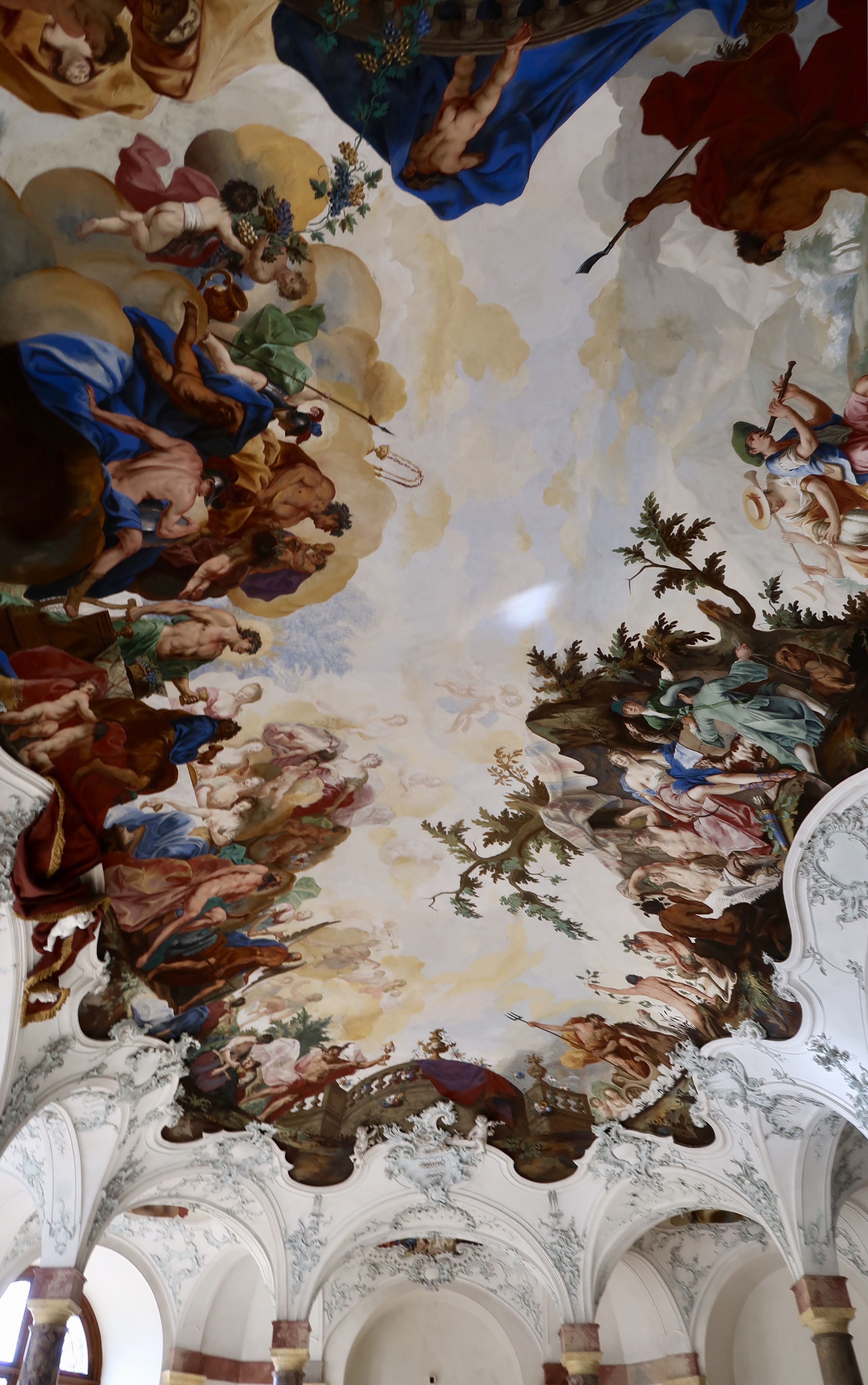 On the ceiling above the grand staircase is the largest fresco in the world. It portrays the animals and landscapes of the four continents known at the time—Europe, Asia, Africa, and America.
