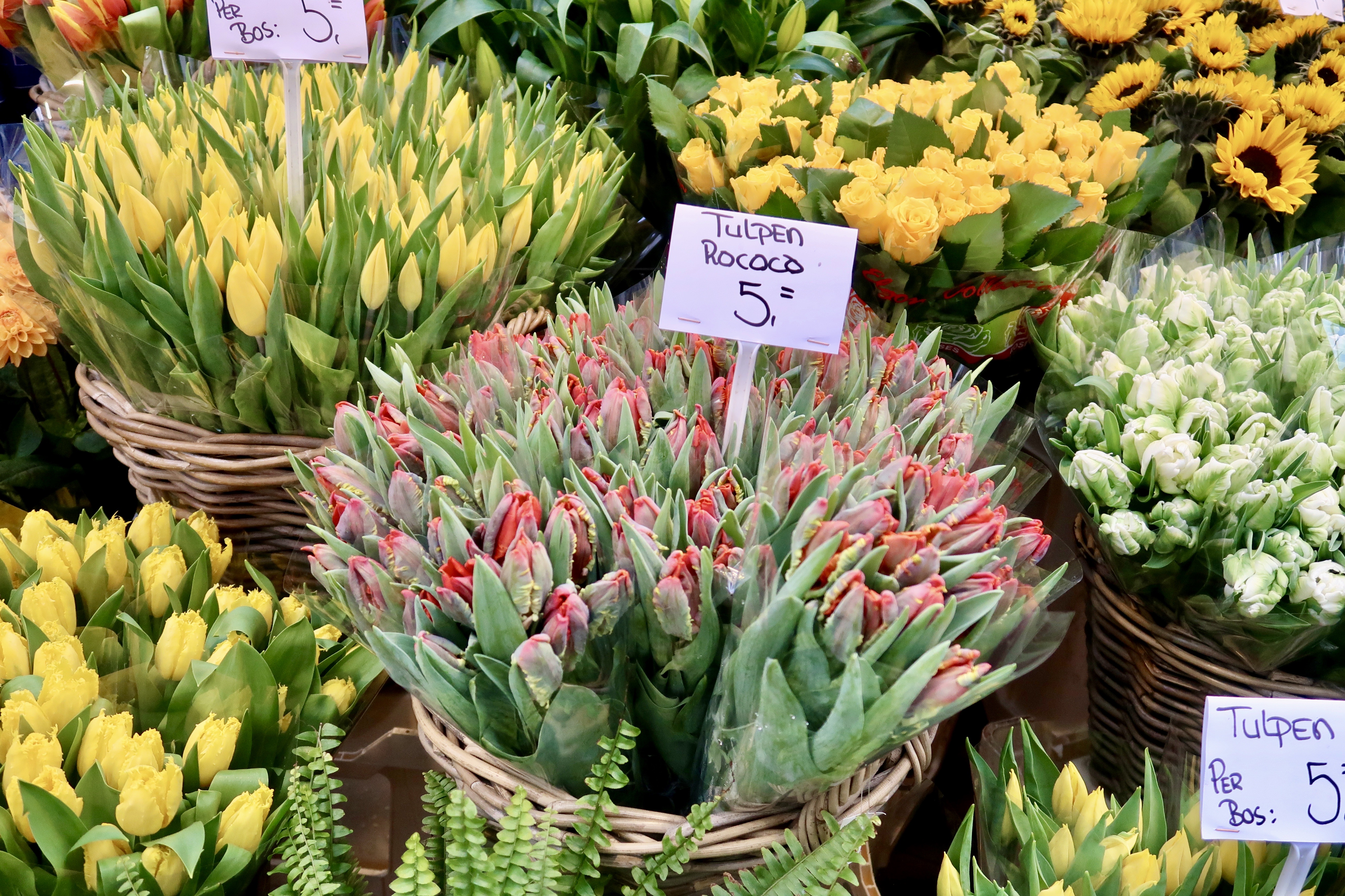 Flower stalls are fixtures in Haarlem’s Grote Markt. Along with Delft and Amsterdam, the city was at the epicenter of “tulip mania” when it swept Europe in the 1600s. The Netherlands is still the world’s leading producer of tulips, exporting over three billion bulbs each year.