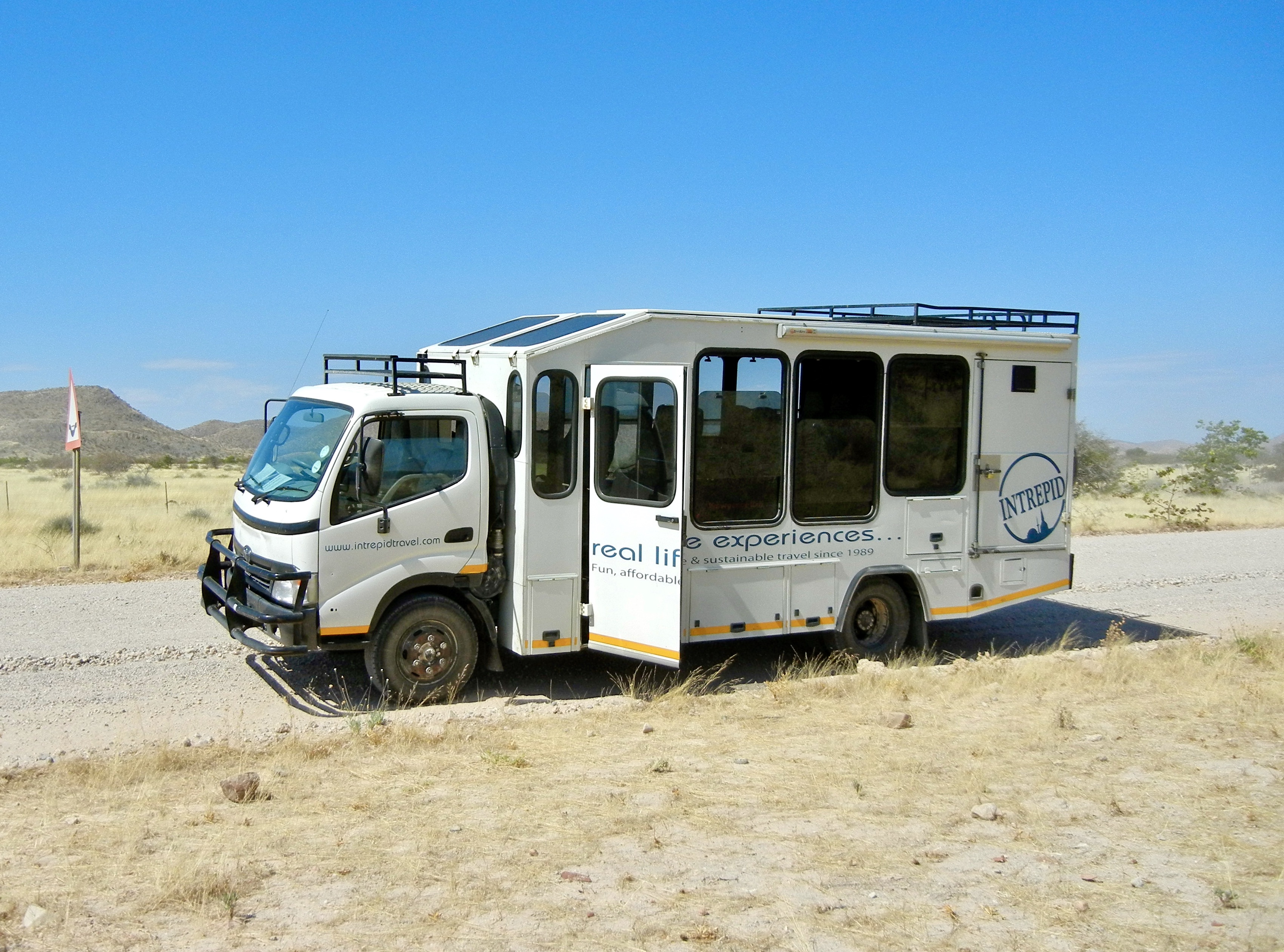 The ice-cream truck headed north to Damaraland, once part of German South-West Africa. We drove through the small cities of Okahandja and Otjiwarongo. Along the sides of the highway, we spotted kudu (a species of antelope), warthogs, guineafowl, and ostriches.