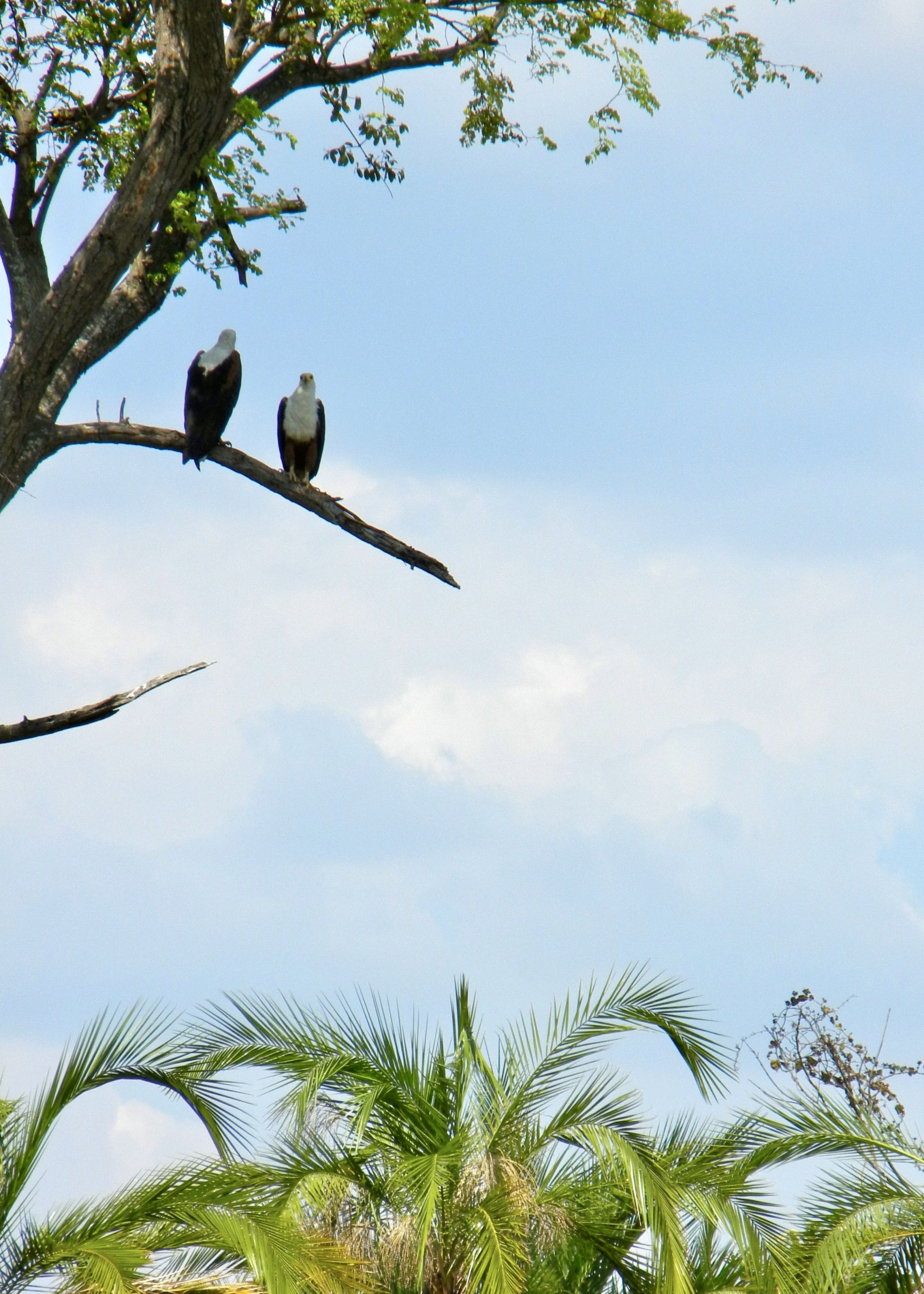 In the morning the speedboat transported us from the Inkwazi back to the ice-cream truck. We recrossed the border into Namibia and drove the deserted dirt roads of the Mahango Game Reserve. Along the way, we spotted elephants, Cape buffalo, zebras, warthogs, and various antelope, including sable, roan, lechwe, tsessebe, and black-faced impala.