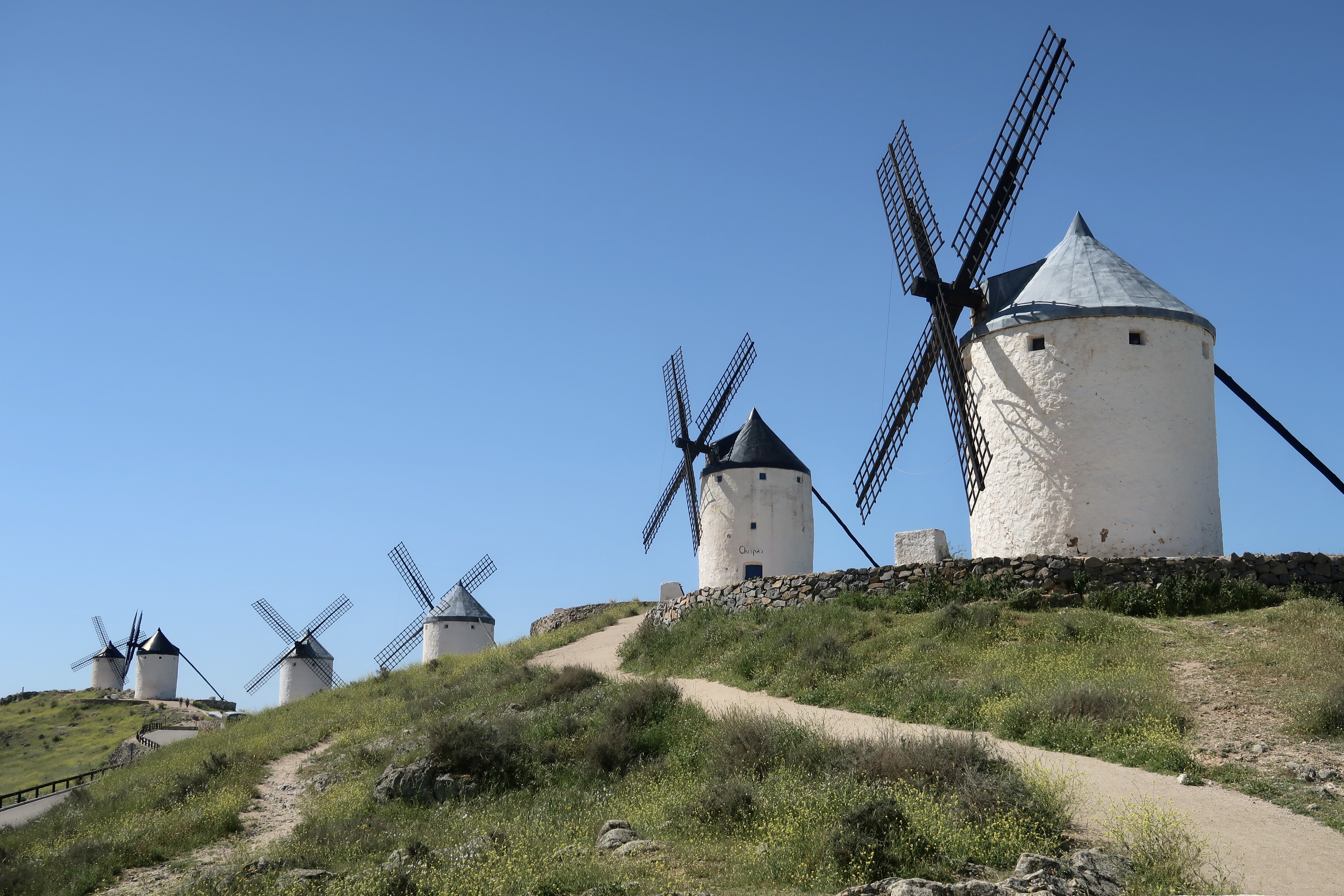 On the ridges wind turbines have replaced Don Quixote’s windmills.