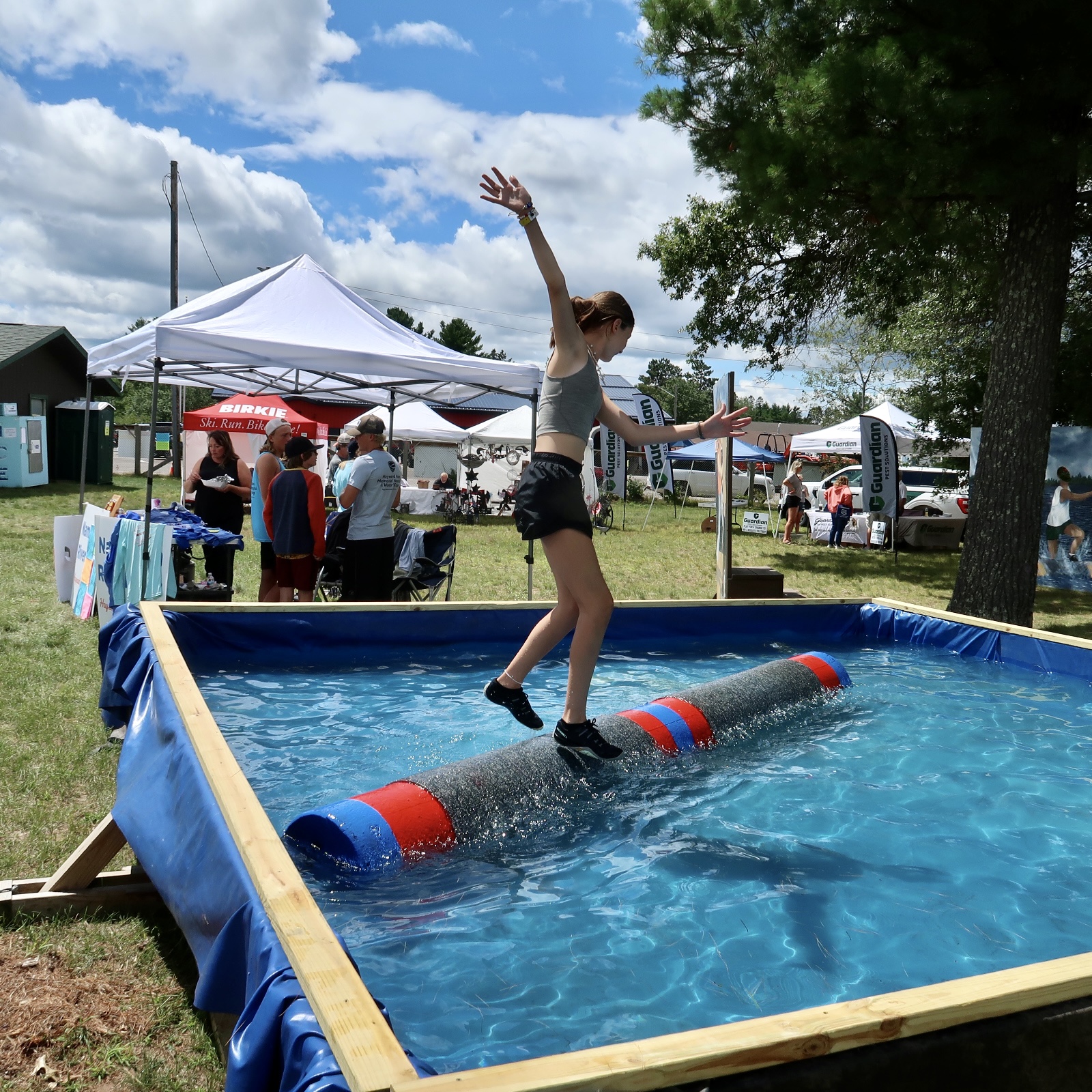 The goal is to “wet” the other roller by causing them to lose balance and fall. If both rollers are upright when the time limit is reached, the match continues on a log of smaller diameter. Smaller logs spin more quickly and sit lower in the water.