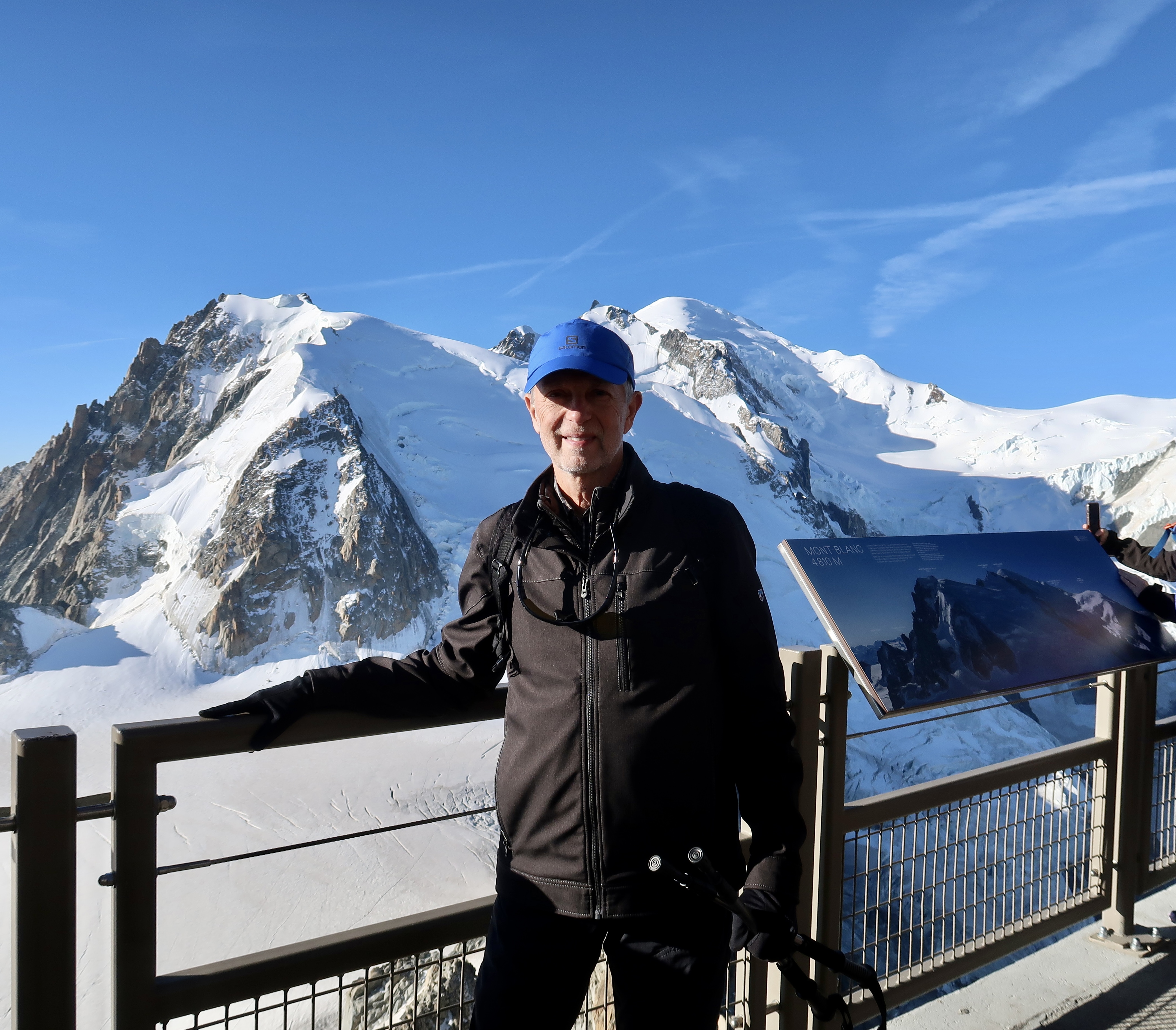From the panoramic viewing platform on the “needle,” Mont Blanc was impressive against a blue sky. It seemed close, even accessible, yet it is over half of a mile higher.