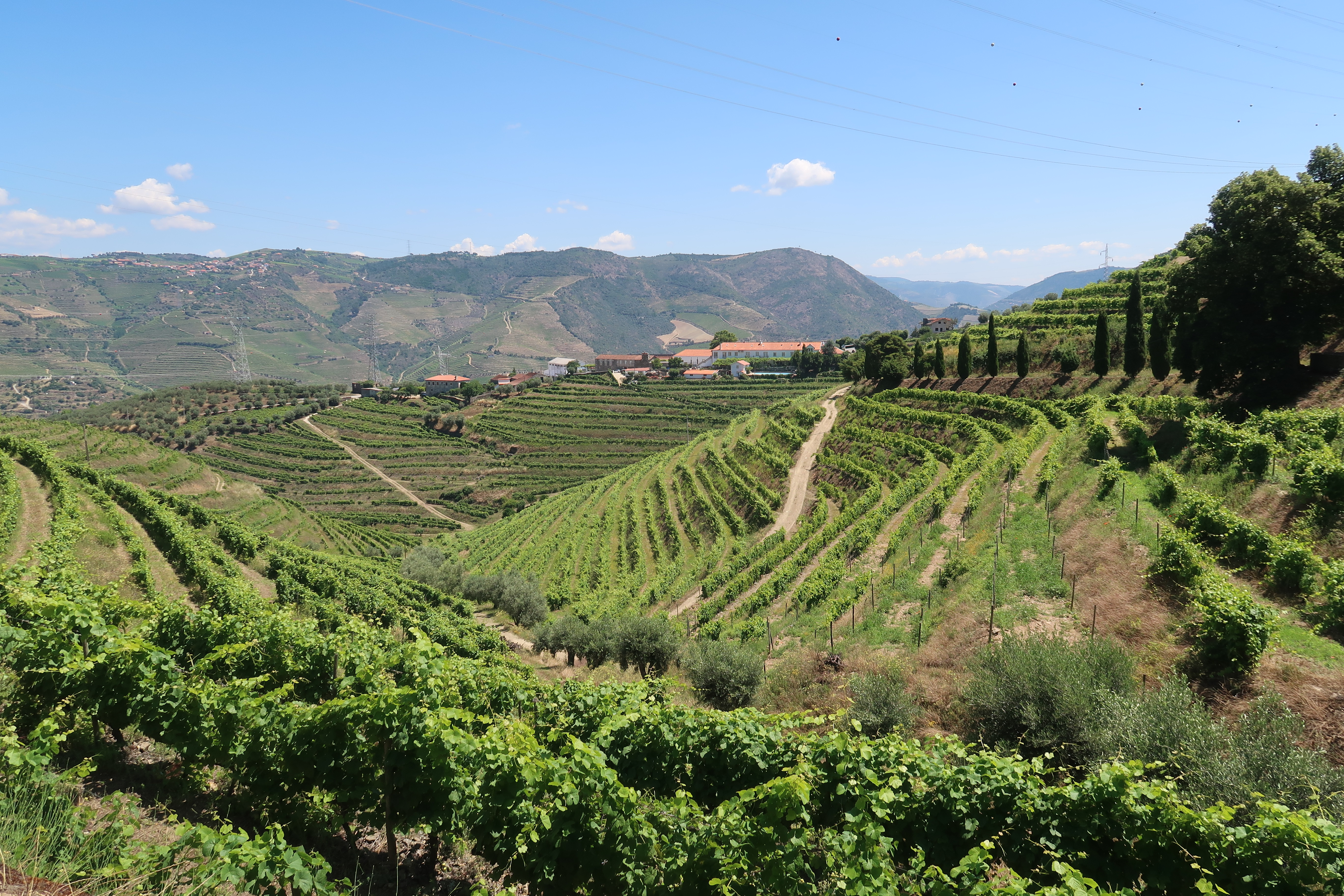 The Alto Douro region is the third oldest protected wine region in the world. The area is mountainous, sculpted by the Douro (DOH roo) River and its tributaries. A hundred square miles of the surrounding hillsides have been terraced, which must have taken as much work as building the Great Wall of China.